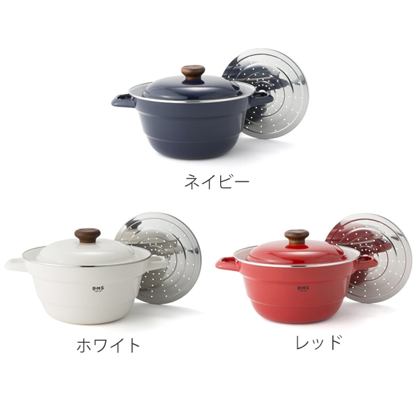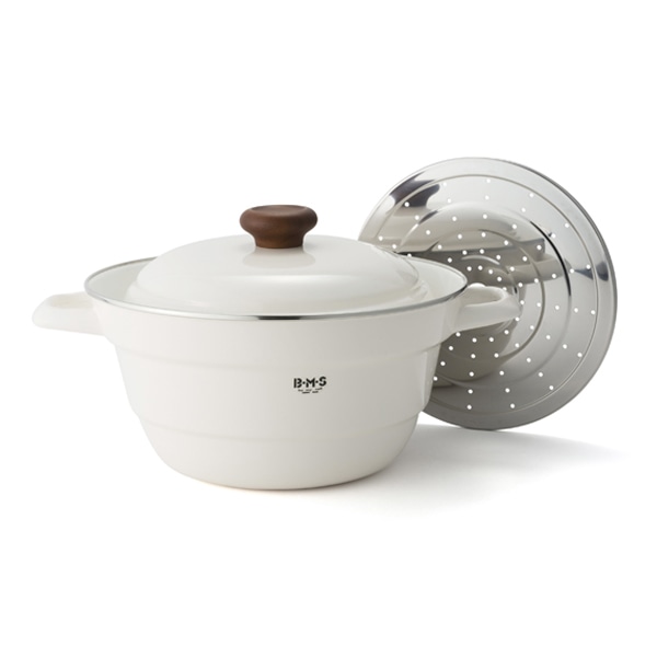 蒸し料理に便利なスノコ付きなので応用範囲は多岐に渡り、レパートリーが広がります。ふきこぼれにくい形状なので茹で物にも便利で、保温性に優れているので煮込み料理にも最適です。内面が白く揚がり具合が分かりやすいので揚げ物にもおすすめです。