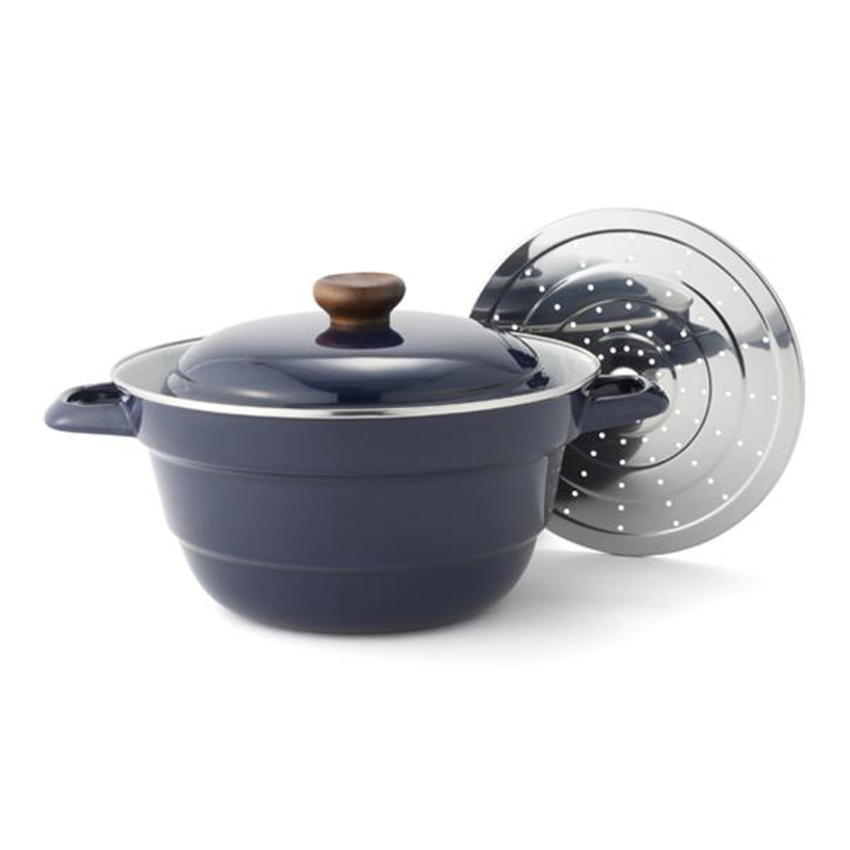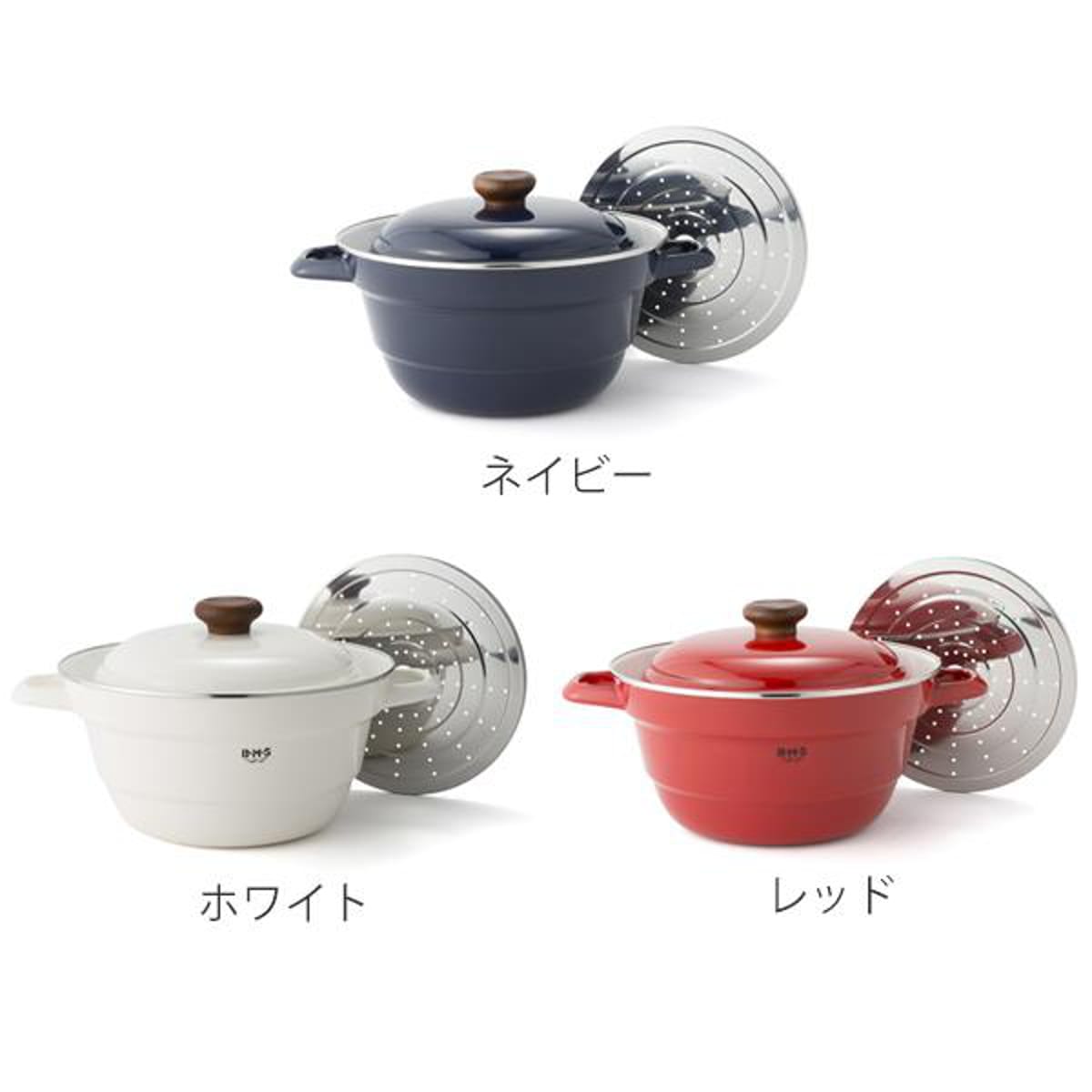 蒸し料理に便利なスノコ付きなので応用範囲は多岐に渡り、レパートリーが広がります。ふきこぼれにくい形状なので茹で物にも便利で、保温性に優れているので煮込み料理にも最適です。内面が白く揚がり具合が分かりやすいので揚げ物にもおすすめです。
