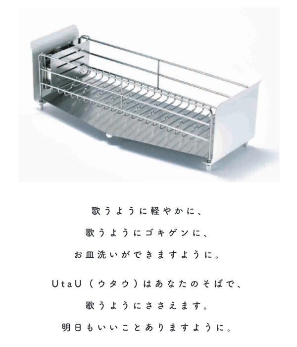 ●「 ハナウタ 」でお馴染みの縦にも横にもお皿が立つ「たてよこウェーブ」搭載の水切りラックです。