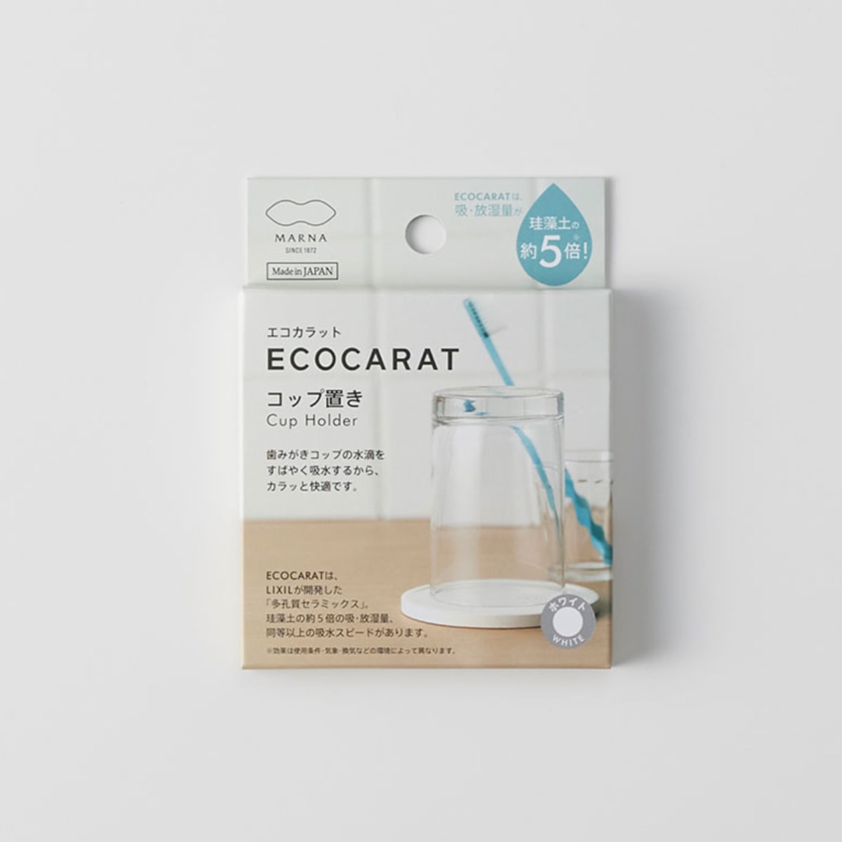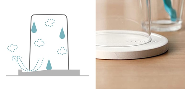 ●歯磨きコップ等の水滴をすばやく吸収する、多孔質セラミックス素材のコップスタンドです。