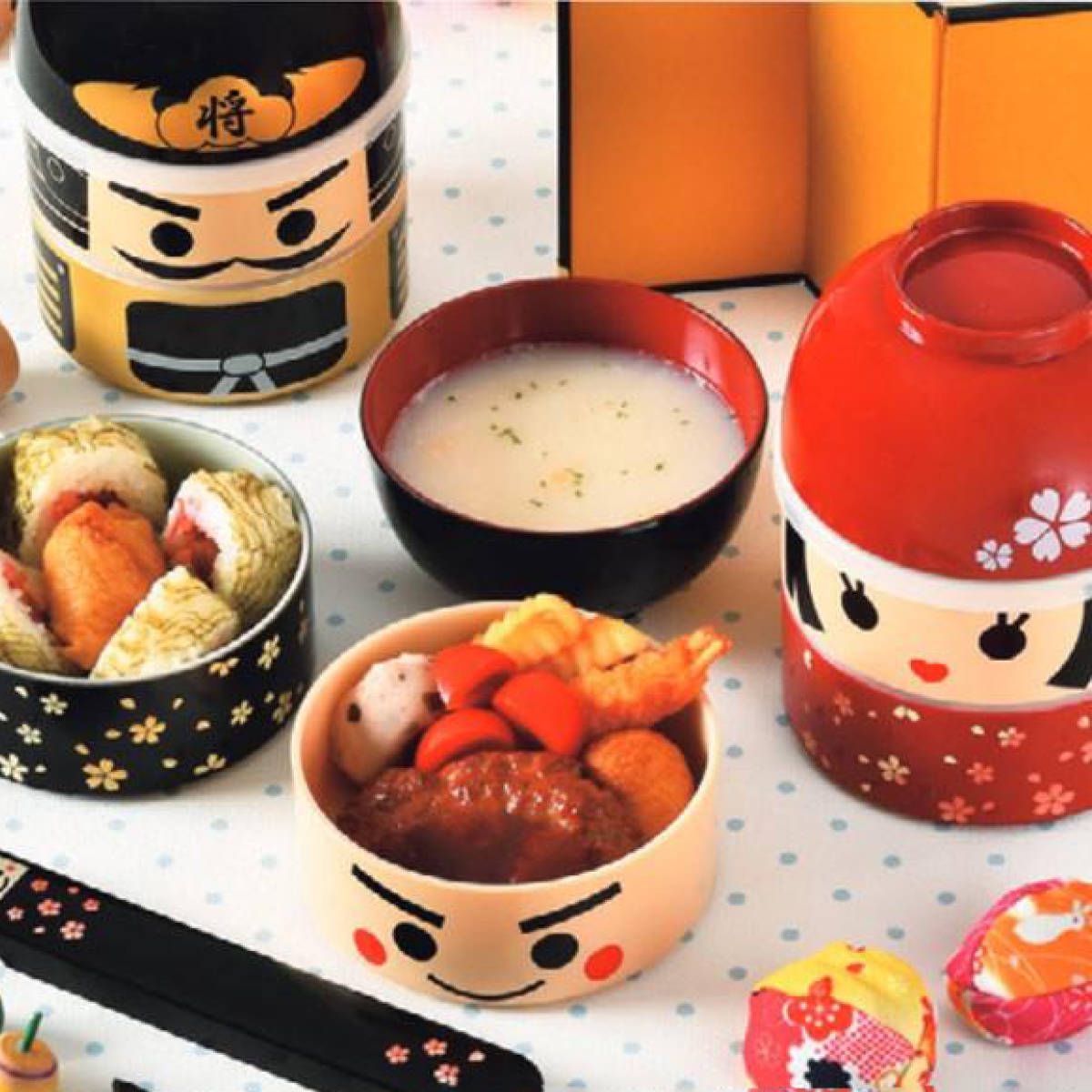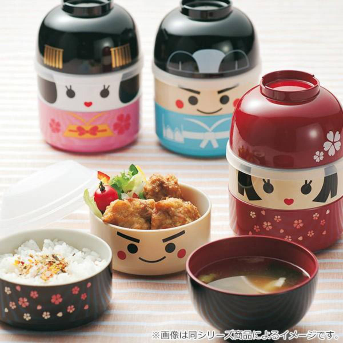 頭が汁椀になる愛嬌のあるお顔のこけし弁当箱
