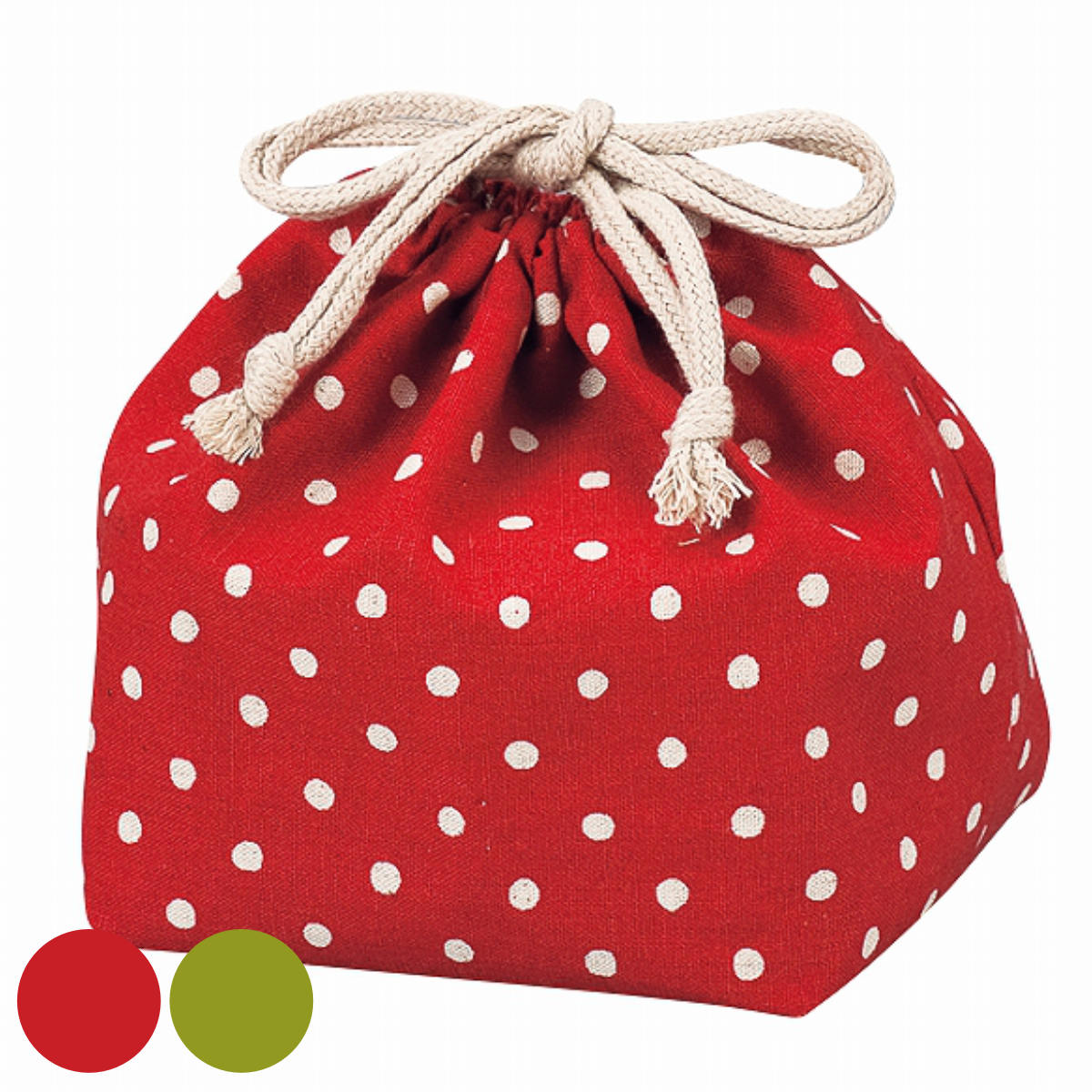 シンプルなドット柄が可愛らしく落ち着いた雰囲気のある巾着袋です。カラーはレッドとグリーンから選べます。安心の日本製です。