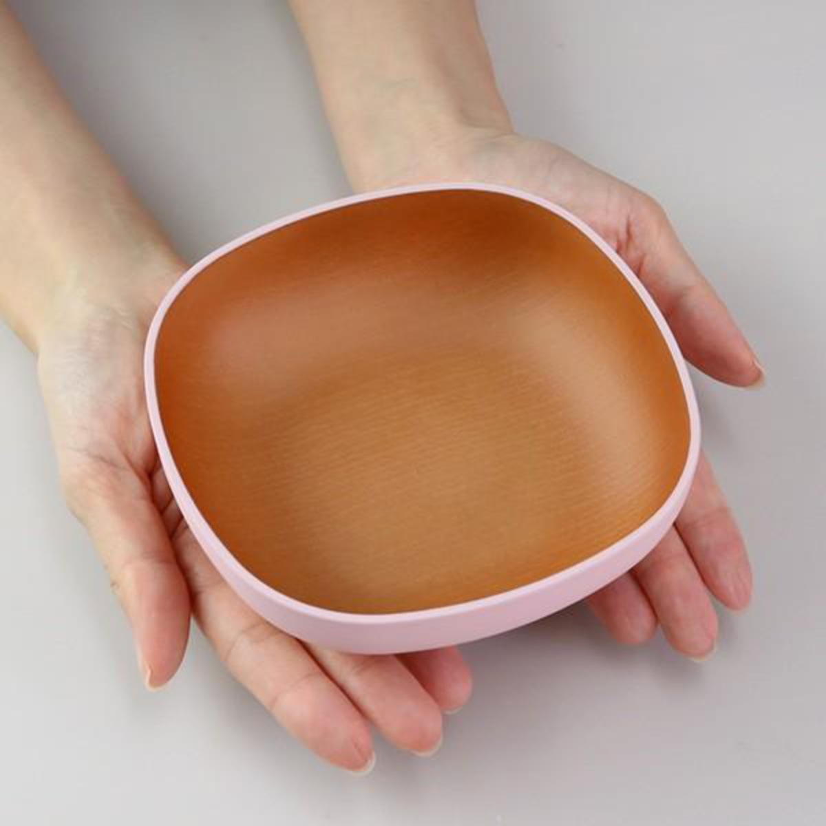 見た目は木製に見えるこちらの食器は、樹脂でできているので木製に比べて乾きが早くお手入れも簡単です。電子レンジ・食洗機どちらにも対応しています。
