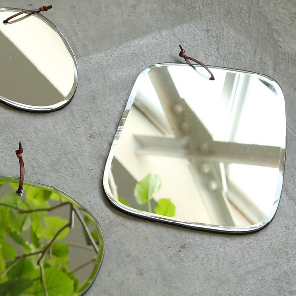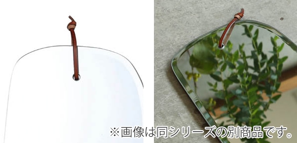 | 革紐付き 革紐が付いているので、壁に引っ掛けてご使用いただけます。 | 額縁のような縁取り 縁は傾斜がついてる美しいシルエットのデザインです。 |