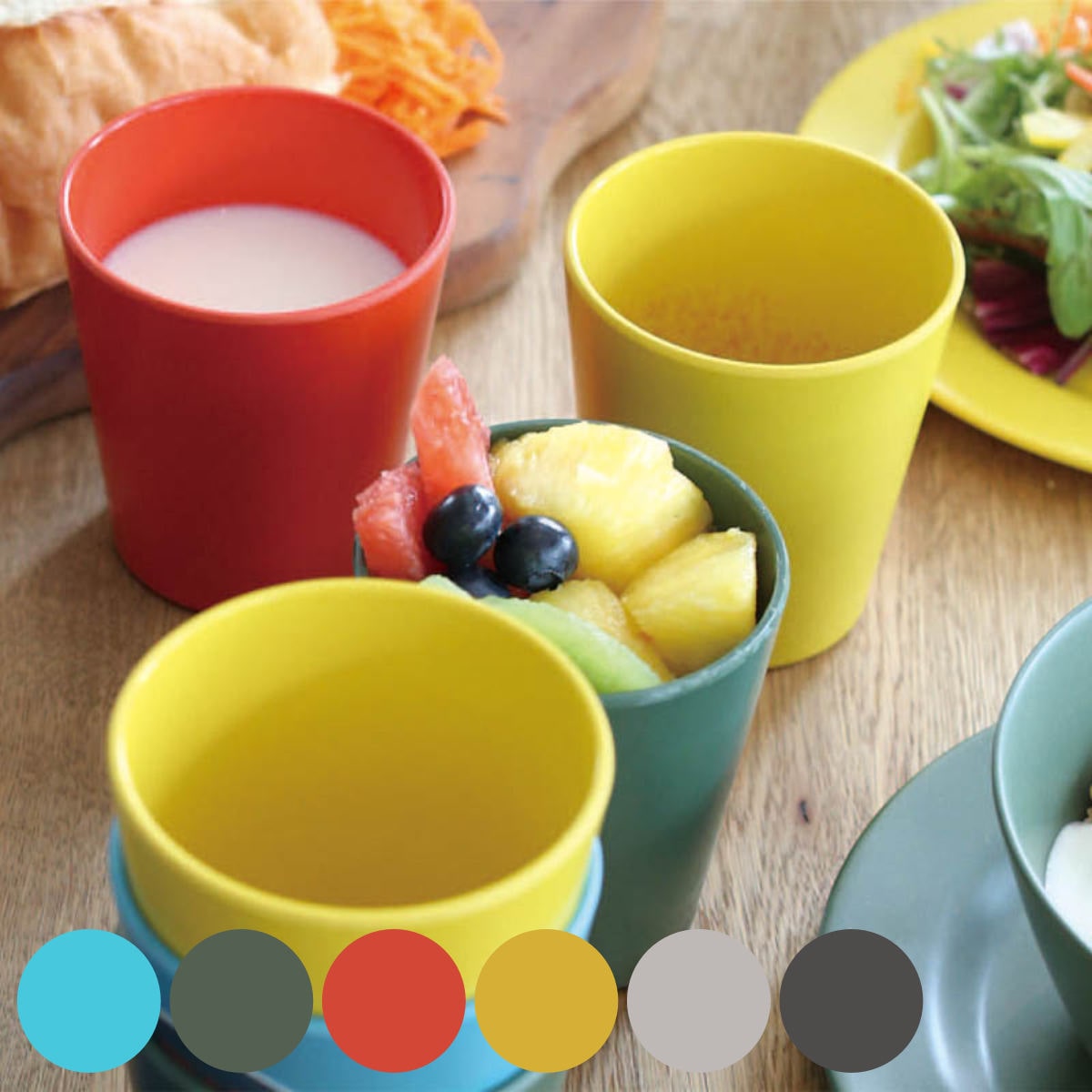 軽くて割れにくいバンブー食器、M&Bシリーズ。お子様のデイリー使いや友人を招いたホームパーティーなど、手軽に使える定番食器として活躍してくれます。ポップで明るいビタミンカラーで、お食事タイムをもっと楽しく、いつもの食卓を色鮮やかに彩ります。