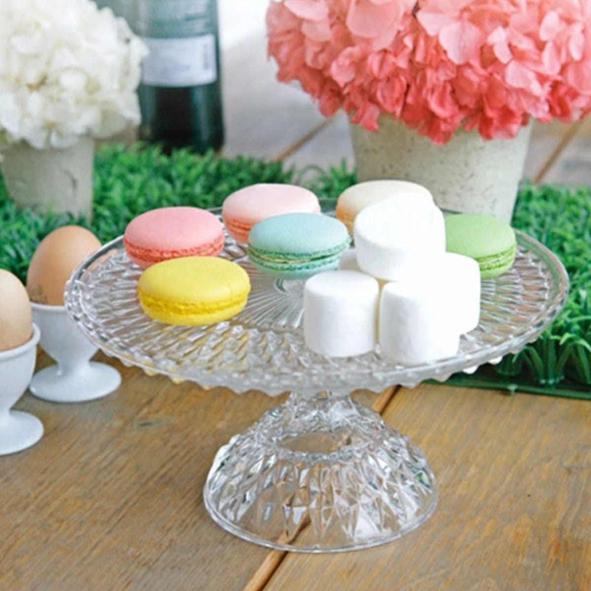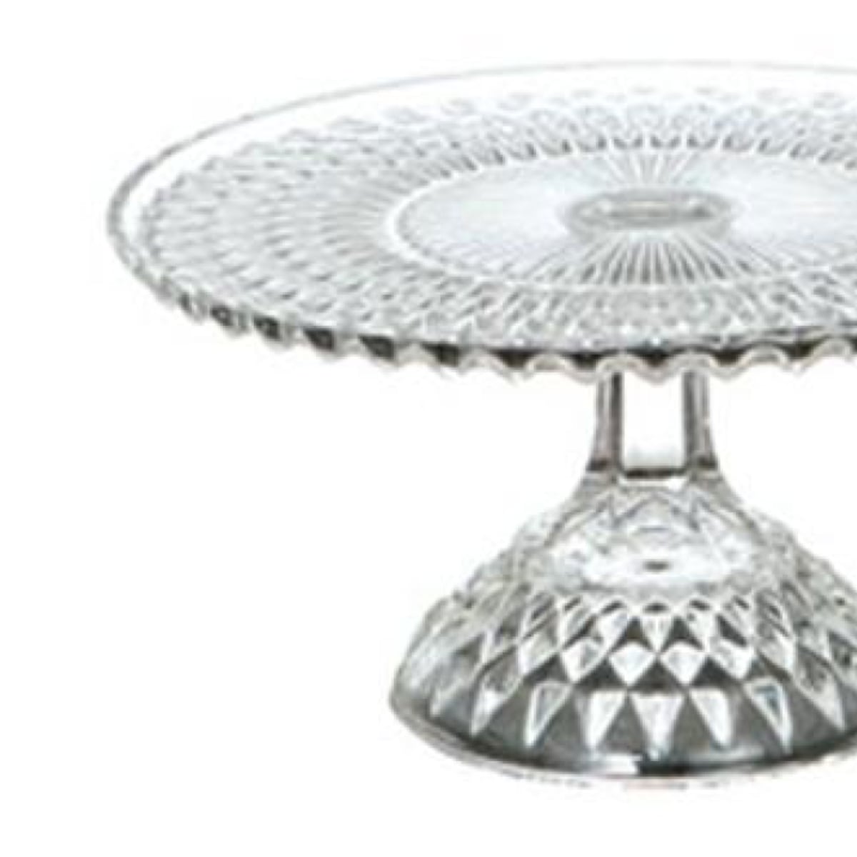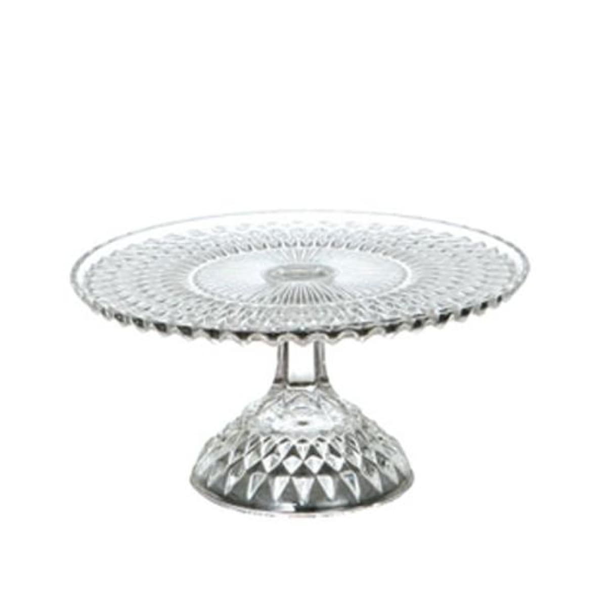 放射状に施された直線的なカットガラスが印象的な、ガラス製のスタンドです。海外のティータイムやホームパーティー、おとぎ話にも登場するような可愛らしさです。ガラス製なのでケーキやお菓子の色味を邪魔せず引き立てる魅力的なアイテムです。