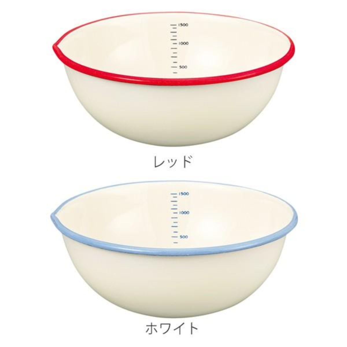サビにくく丈夫で長持ちするホーロー製ボウルです。便利な目安目盛りとキレイに注げる片口付きです。確かな機能性と清潔感のあるなめらかな質感が魅力です。毎日使う道具だからこそこだわりの道具で。引き出しや戸棚にしまっておくのがもったいないお洒落なキッチンアイテムです。