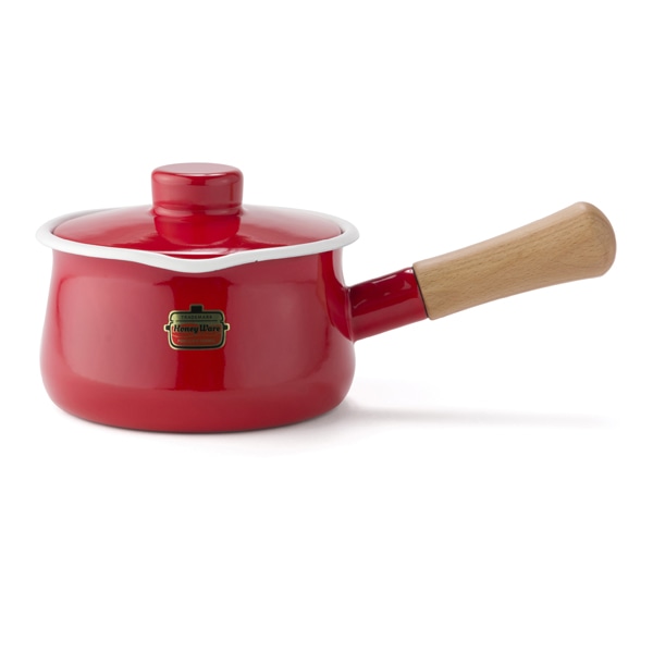 ホーロー製品は、鉄のボディをガラスの膜で覆っています。酸やアルカリに強く、におい移りが少ない特徴があります。ホットミルク、チャイ、スープ、スイーツの下ごしらえに丁度いいサイズのミルクパンです。カップや器に移し替える時に液だれしにくい注ぎ口付きです。