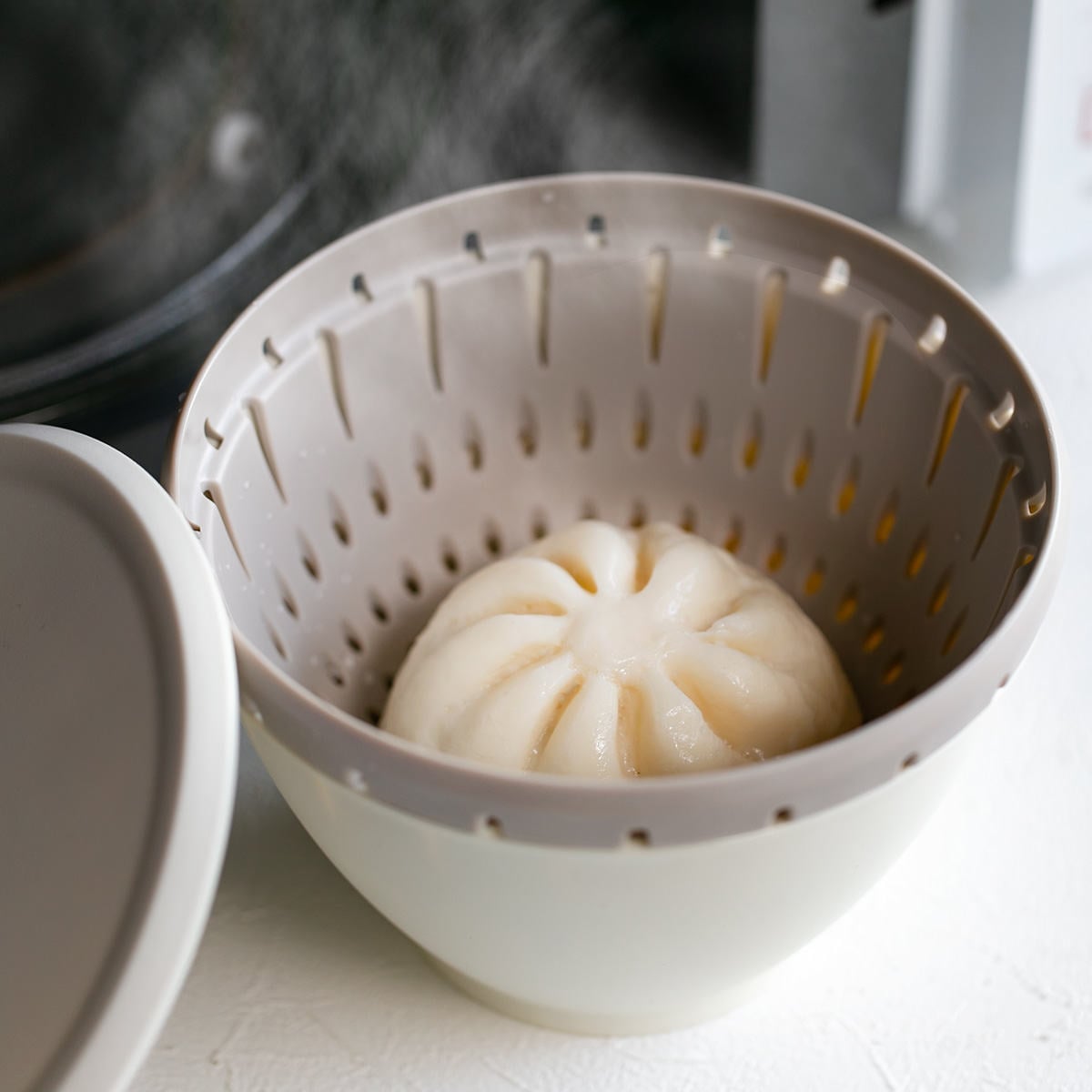 水を入れてレンジスチーマーとしてもお使いいただけます。中華まんの温め直しやお湯を入れてパスタを茹でたり、セットで使うことで調理の幅が広がり、主菜や副菜、おつまみにお弁当と、さまざまなシーンで活躍します。