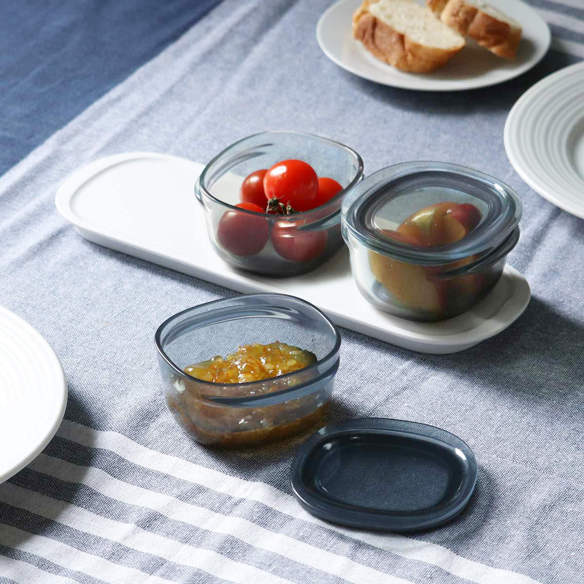 冷蔵庫からまとめて取り出してそのまま食卓に並べることもできます。おつまみや薬味などを入れておけば、まるでお店のような雰囲気に。毎日の食卓はもちろん、ホームパーティなどでも活躍してくれます。