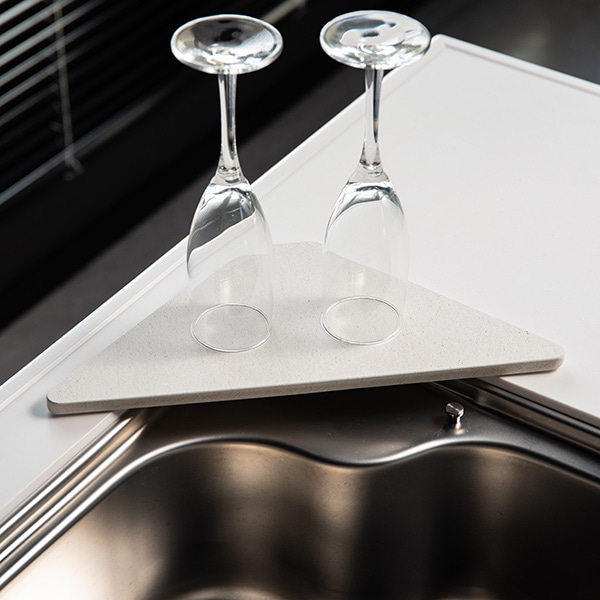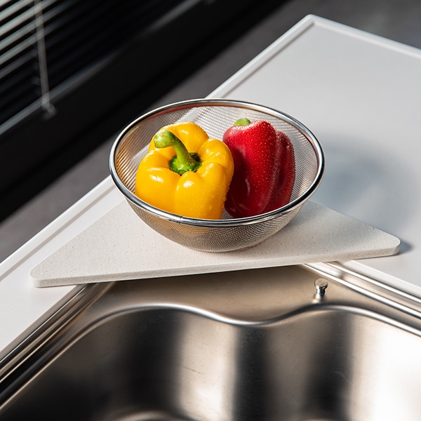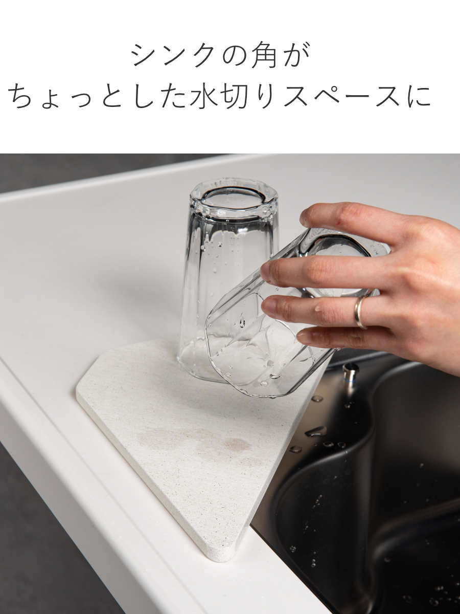 水洗いした野菜やグラス・水筒などを「ちょっと乾かしたい」時に、シンクの角や洗面所などに設置できる水切りプレートです。もったいないスペースを有効活用でき、水捨ての手間や水垢の心配もいらないので、時短になります。