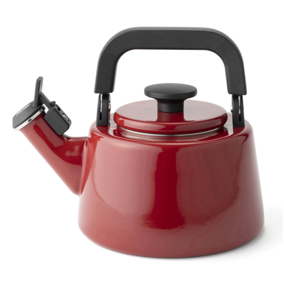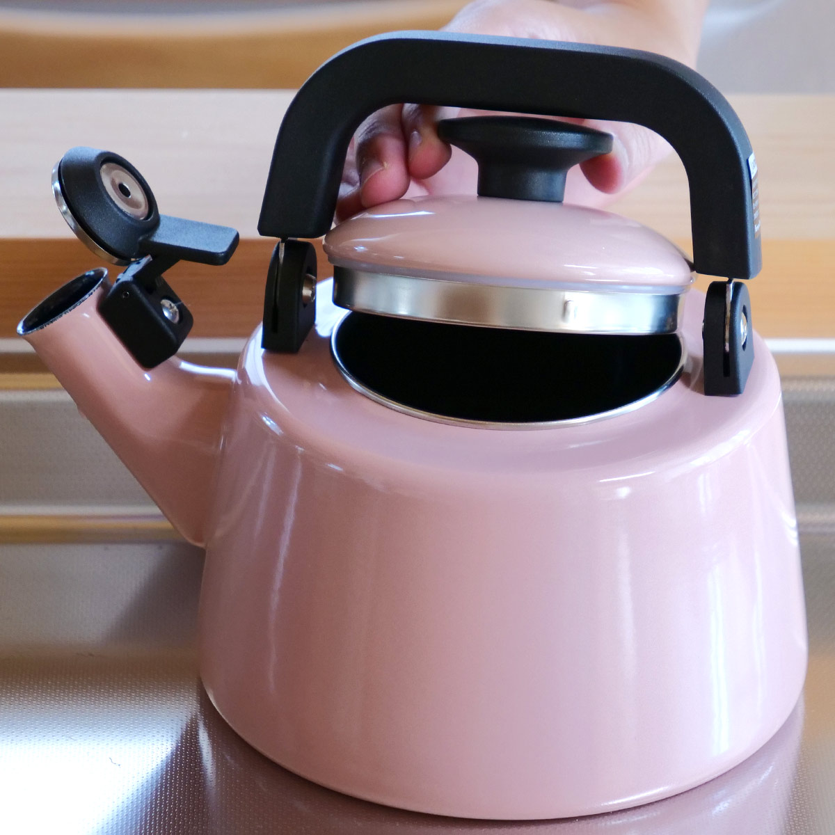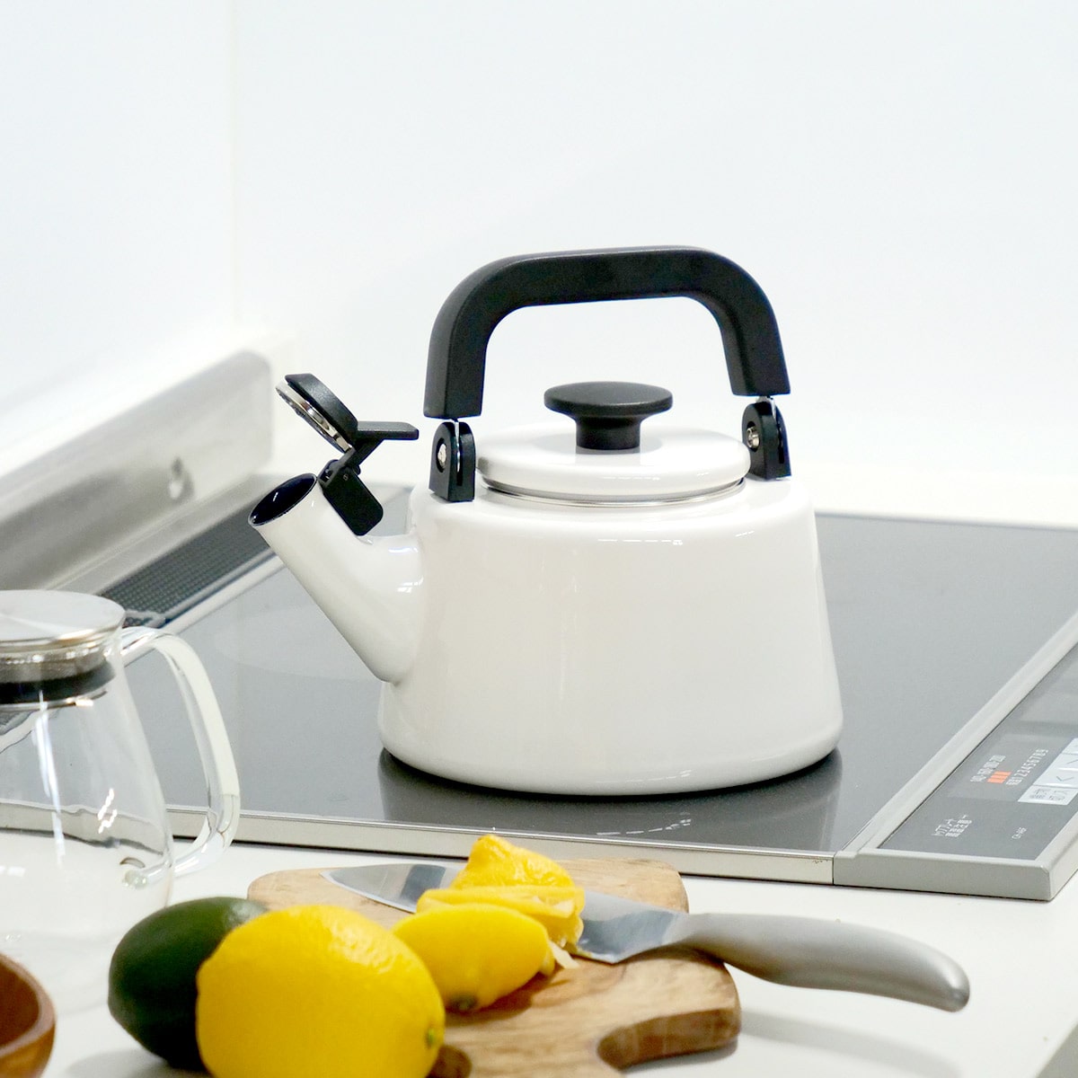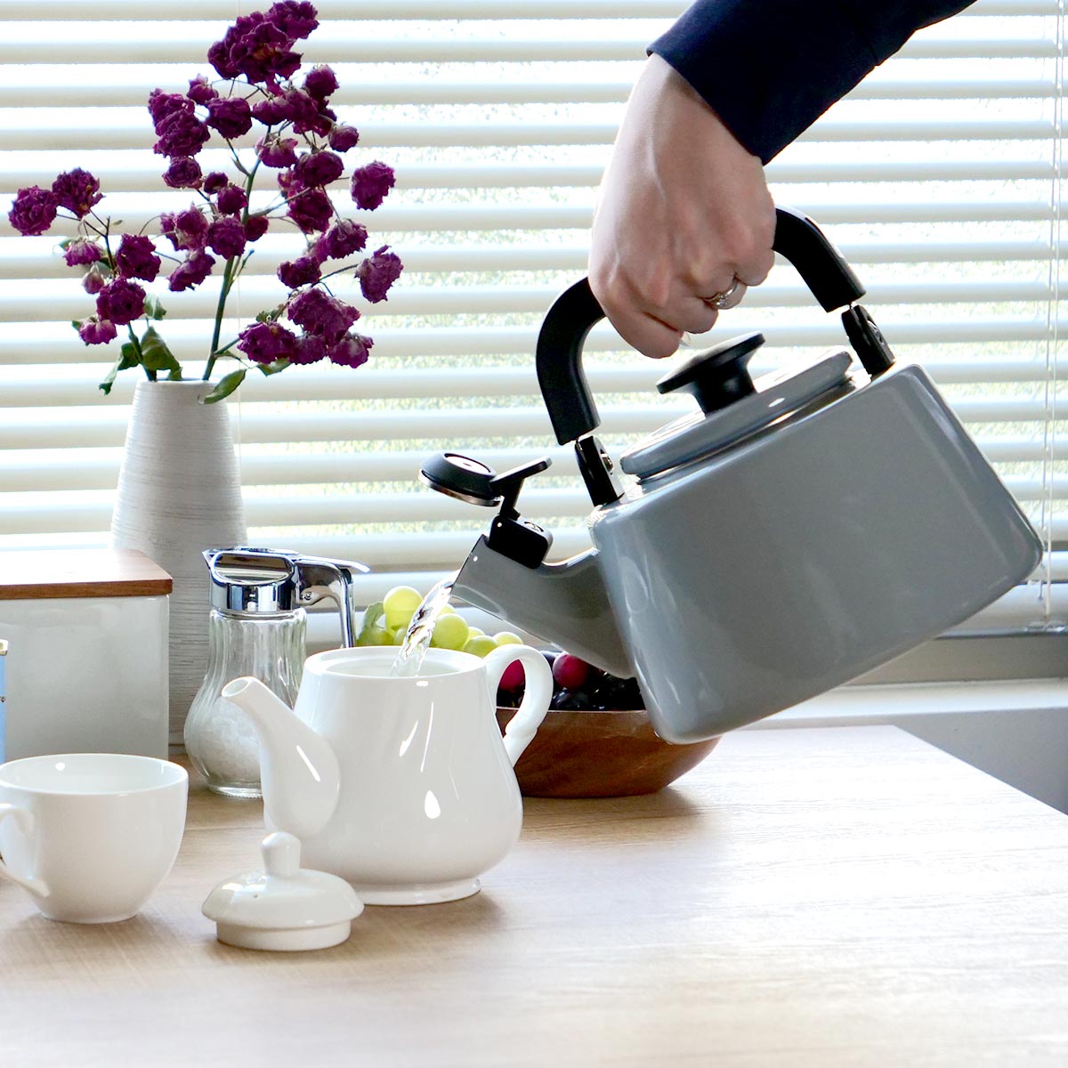 笛吹きのホーロー製ケトルです。ホーローは熱効率がいいのでお湯が沸くのも早く、保温性に優れています。丈夫で長くお使いいただけるのも嬉しいポイントです。お茶やコーヒーを淹れるには、何と言っても金気を出さないホーロー製ケトルが一番です。