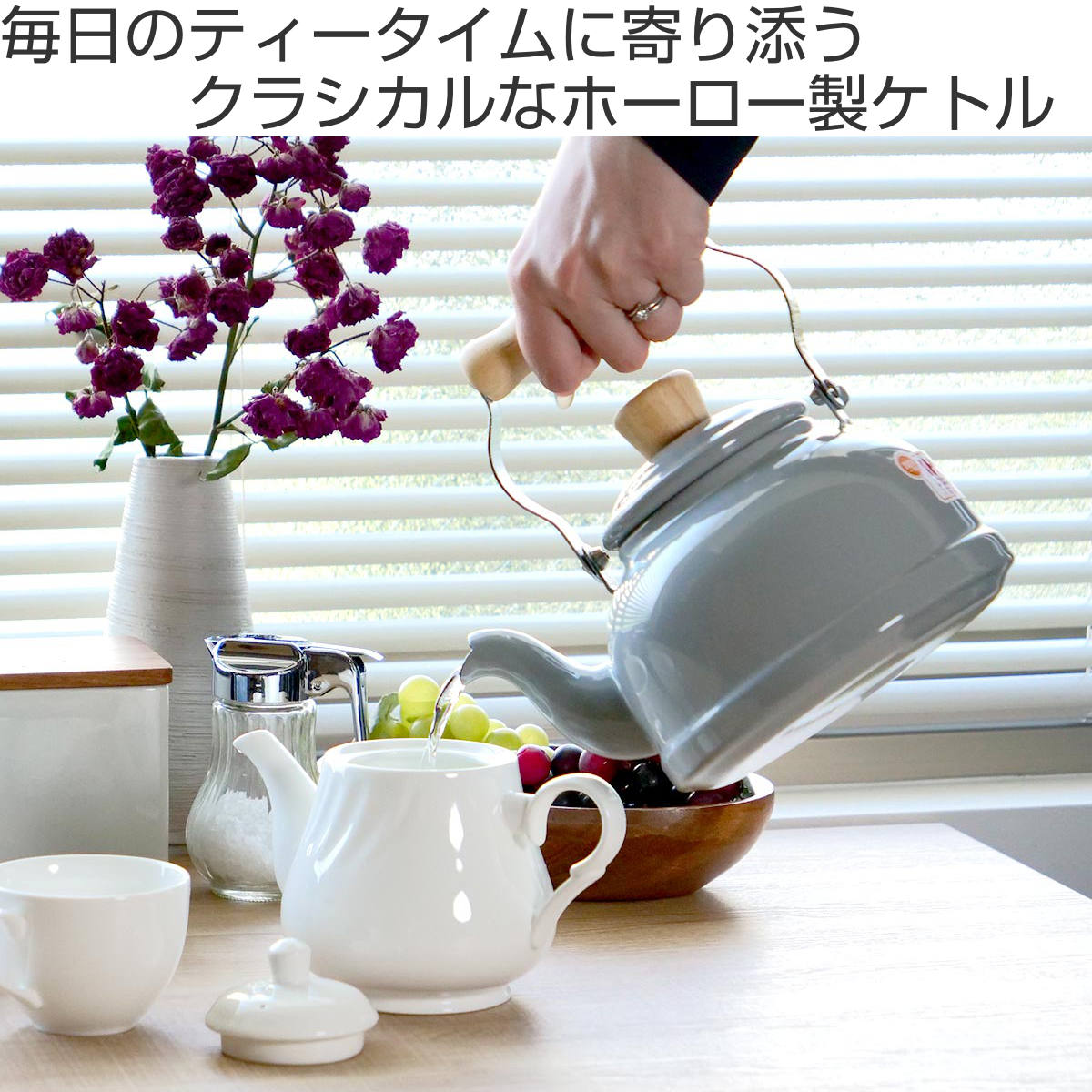 クラシカルでナチュラルなテイストのミニケトルはキッチンに置いたままでも生活感が出ず、絵になります。どんな空間にも調和する可愛らしい4色のカラー展開でお気に入りが見つかるはずです。