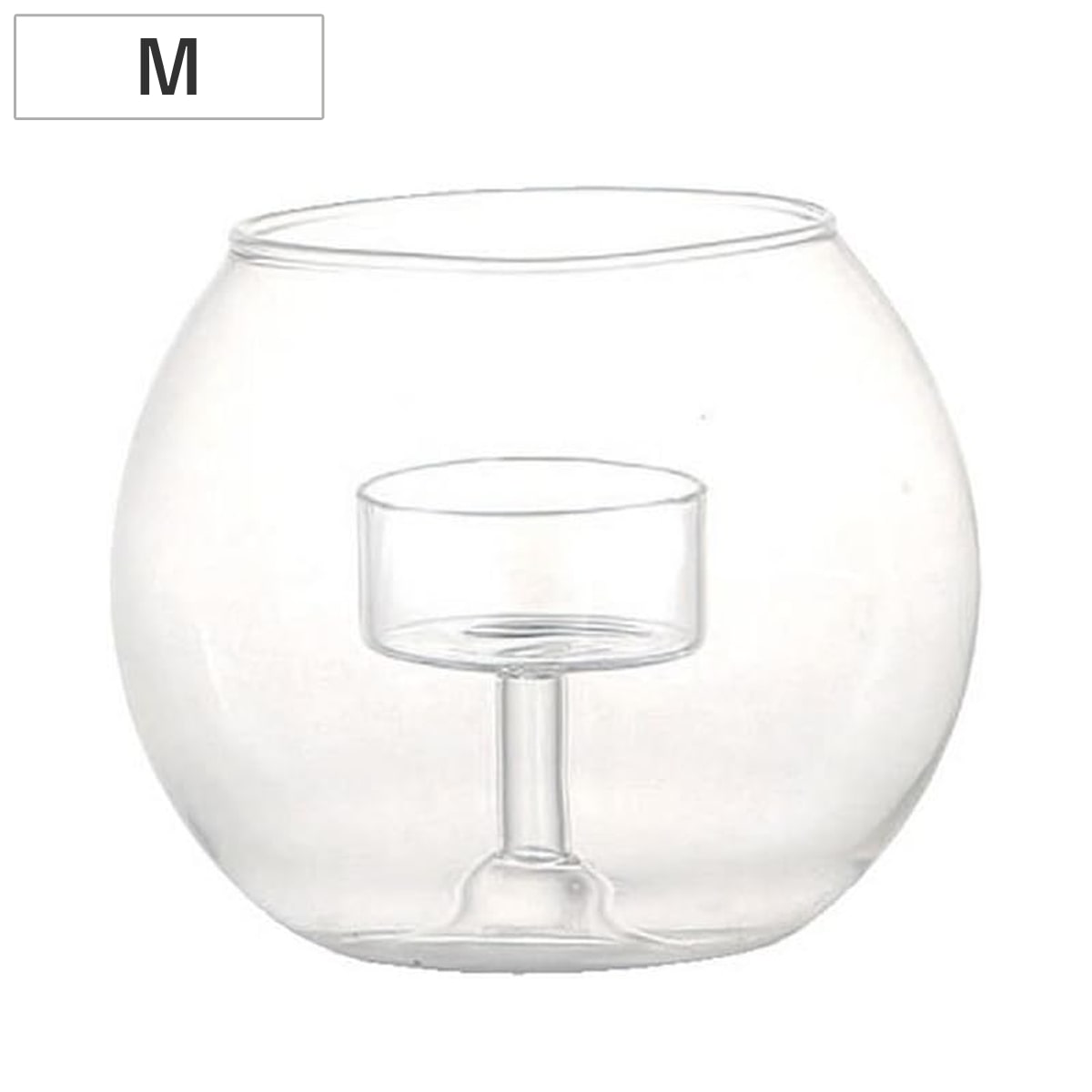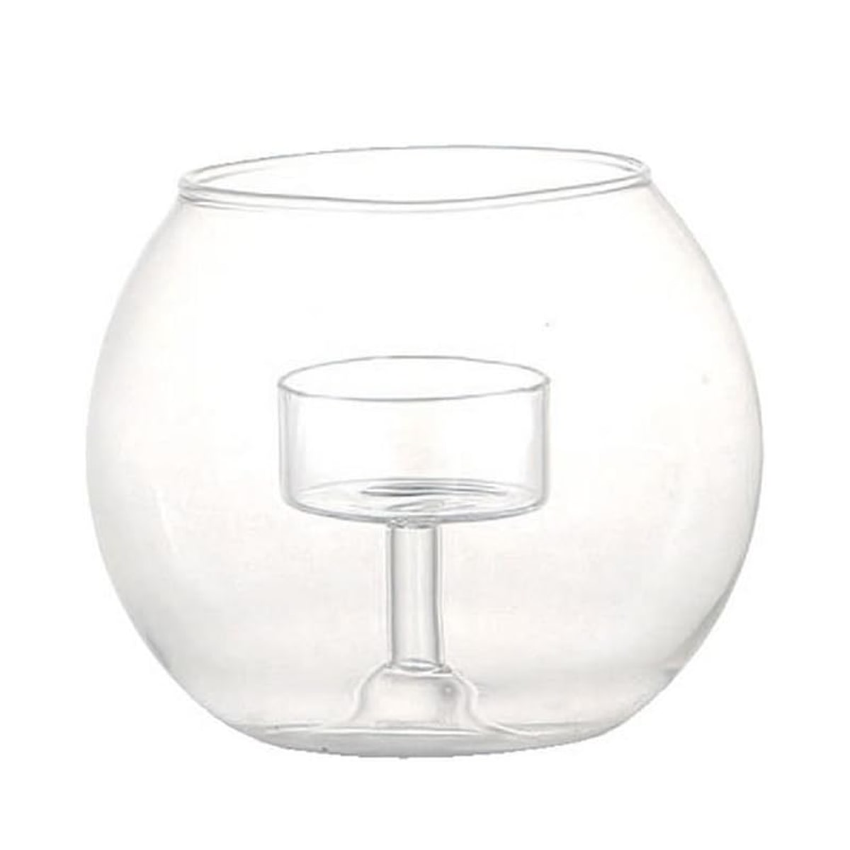 丸い形のガラス製キャンドルホルダーです。普段の照明とは少し違う光の演出を楽しむことができ、クリアガラスを通してキャンドルの美しさを増した光で癒しの空間をもたらしてくれます。