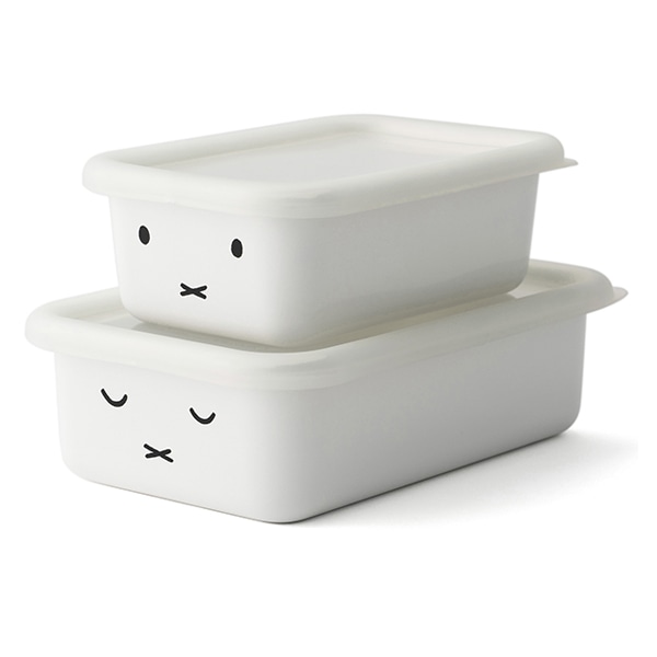 ミッフィーのおかおがあしらわれた、使い勝手の良いホーロー製の保存容器です。酸や塩分に強いホーロー製なので幅広い食材の保存に適しています。表面のガラス質は汚れが付きにくく、匂い移りも少ないので作り置きのおかずから夕食の残りの保存、お肉やお魚の冷凍・冷蔵保存もできるので幅広くお使いいただけます。