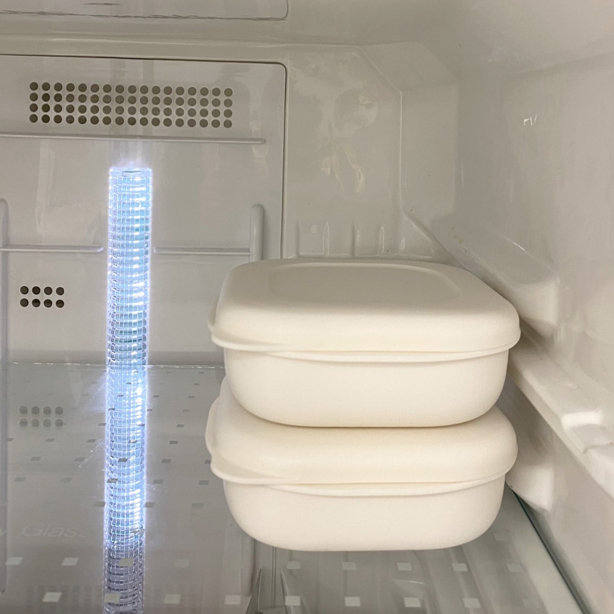 同じ物を重ねた時にフタのくぼみがフィットする仕様になっています。重ねて収納すれば、冷凍庫でスペースを取らずにコンパクトに保存ができ便利です。