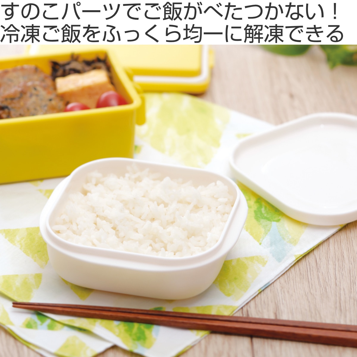 温めた時に出る余分な水分は、すのこパーツの下に落ちます。水分は保ちつつ、ごはんがべちゃっとなるのを防ぎます。