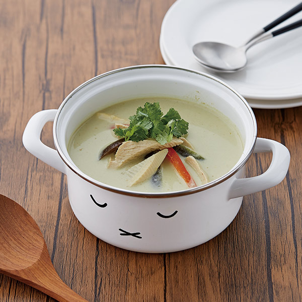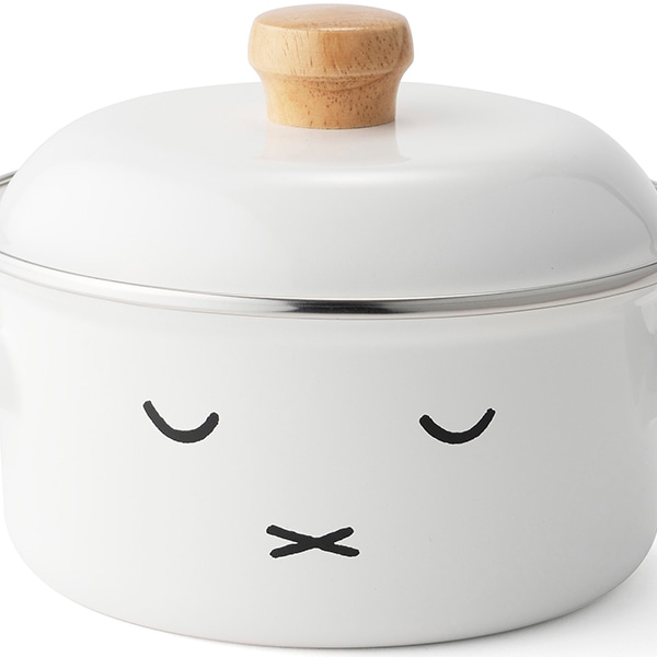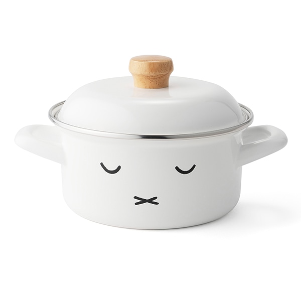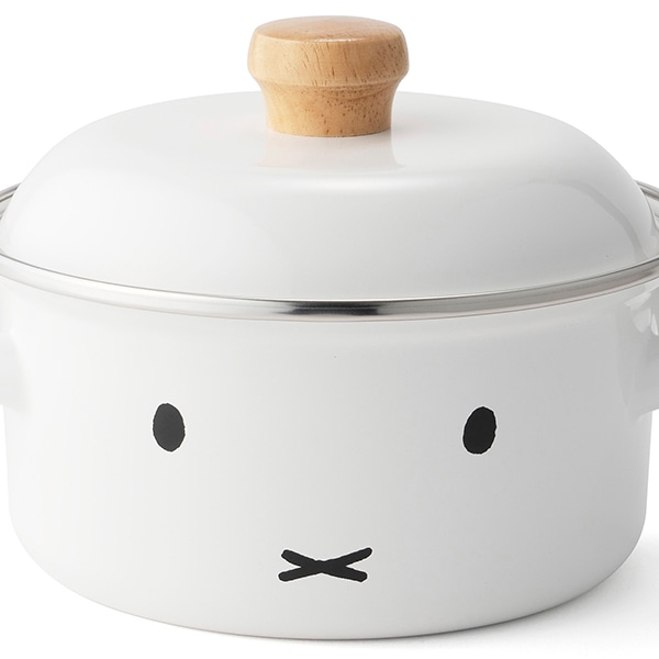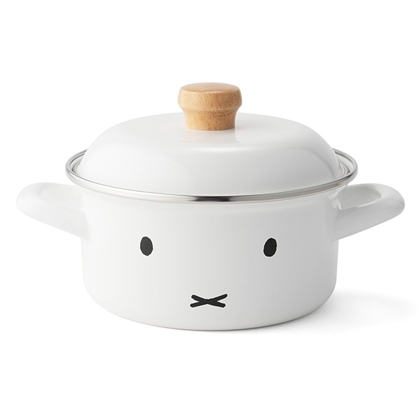 純白のホーローに「ミッフィーのおかお」が可愛い両手鍋です。1~2人分の少量の調理に適したミニサイズです。IHでもお使いいただけます。