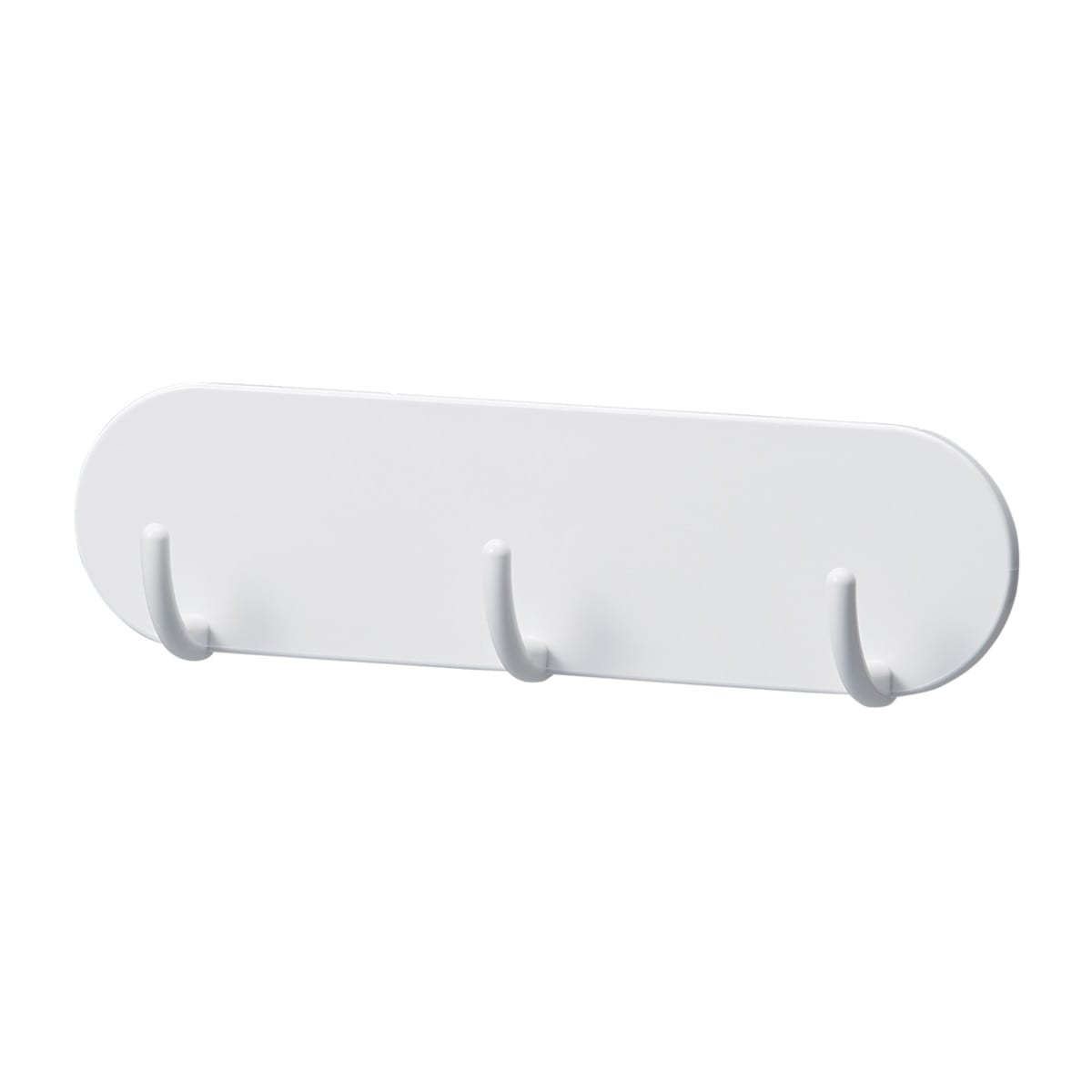 キッチンツールやお掃除道具、鍵やアクセサリーなどお好みの物を掛けて収納できるマグネット3連フックです。すぐ使いたいけど置き場所に困っていた物も、サッと使うことができます。引っ掛けやすいように、フック部は細くなっています。オールプラスチックなので、水回りでもサビません。