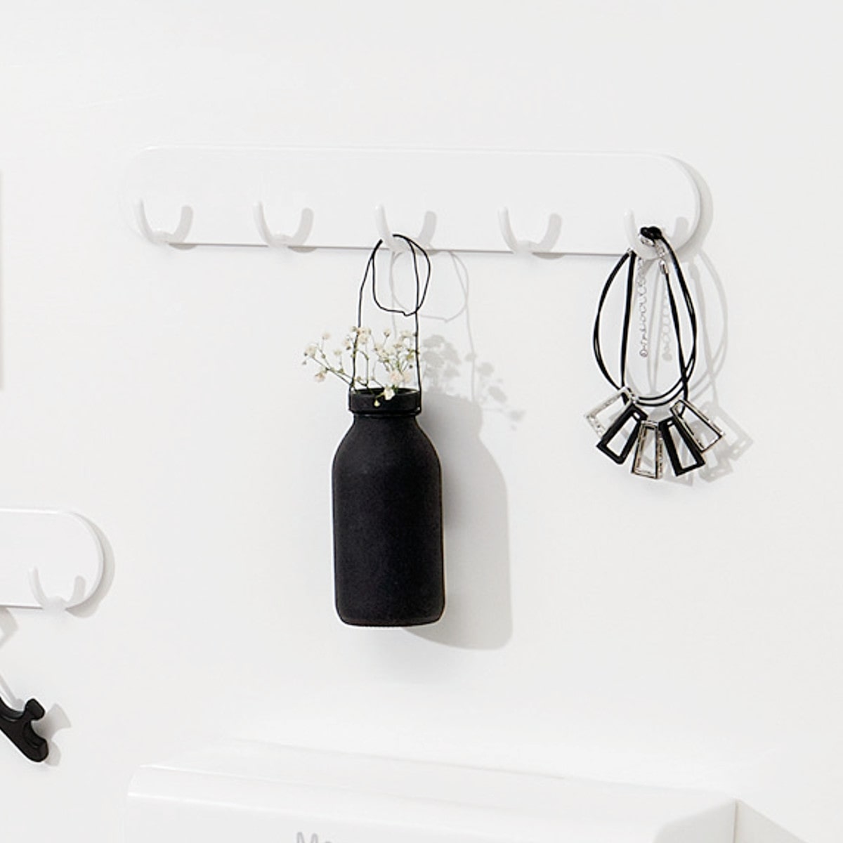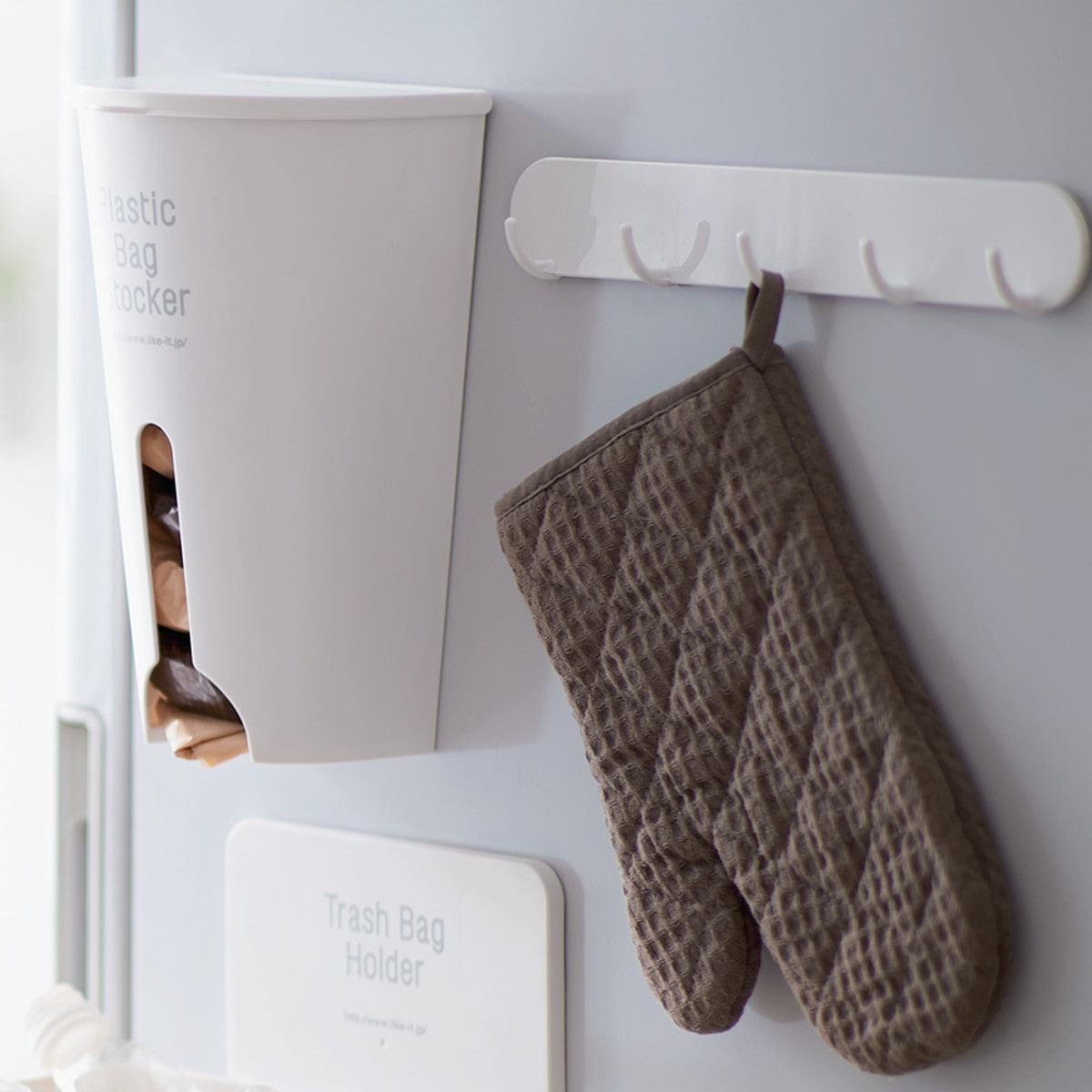 キッチンツールやお掃除道具、鍵やアクセサリーなどお好みの物を掛けて収納できるマグネット5連フックです。すぐ使いたいけど置き場所に困っていた物も、サッと使うことができます。引っ掛けやすいように、フック部は細くなっています。オールプラスチックなので、水回りでもサビません。