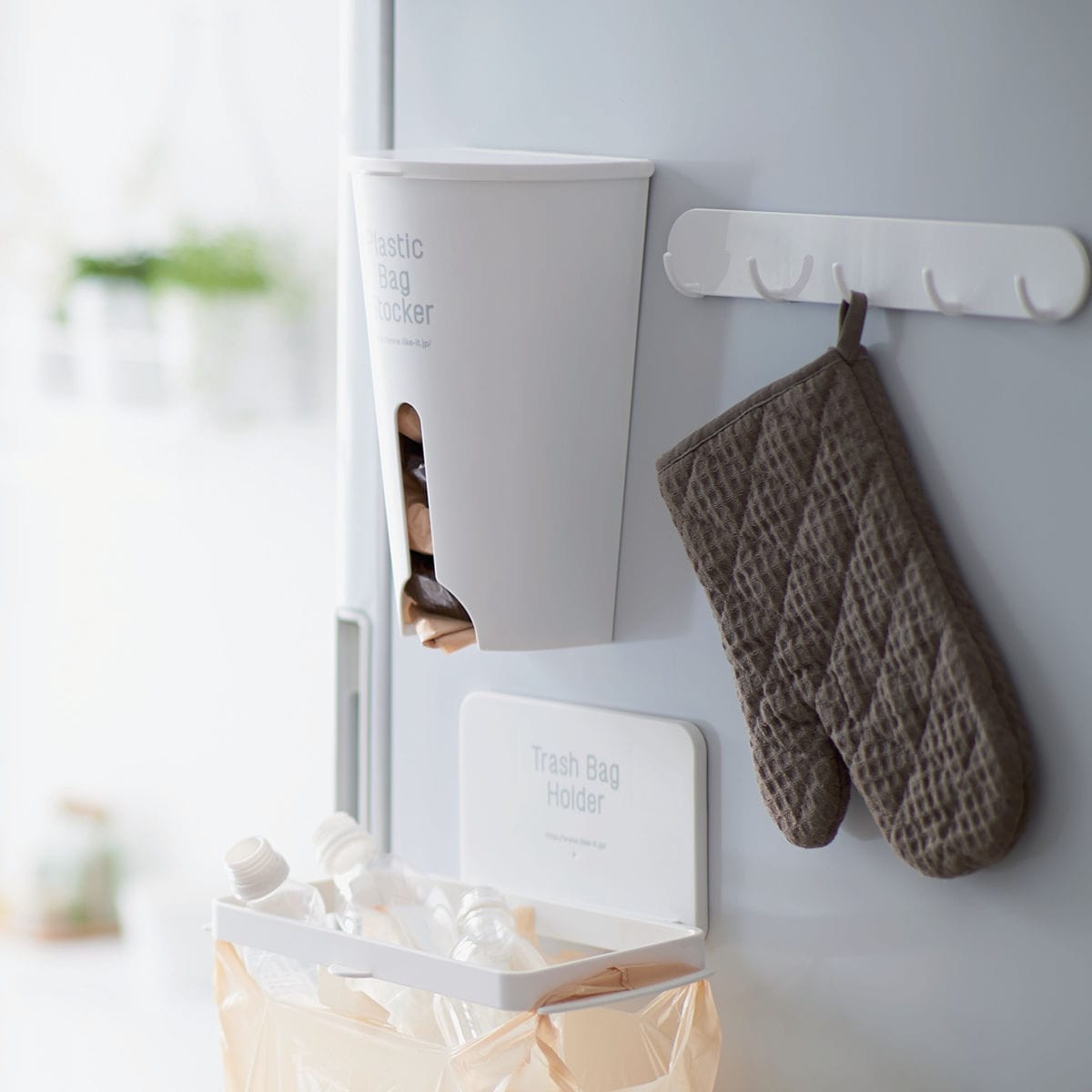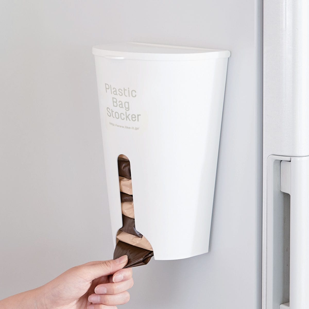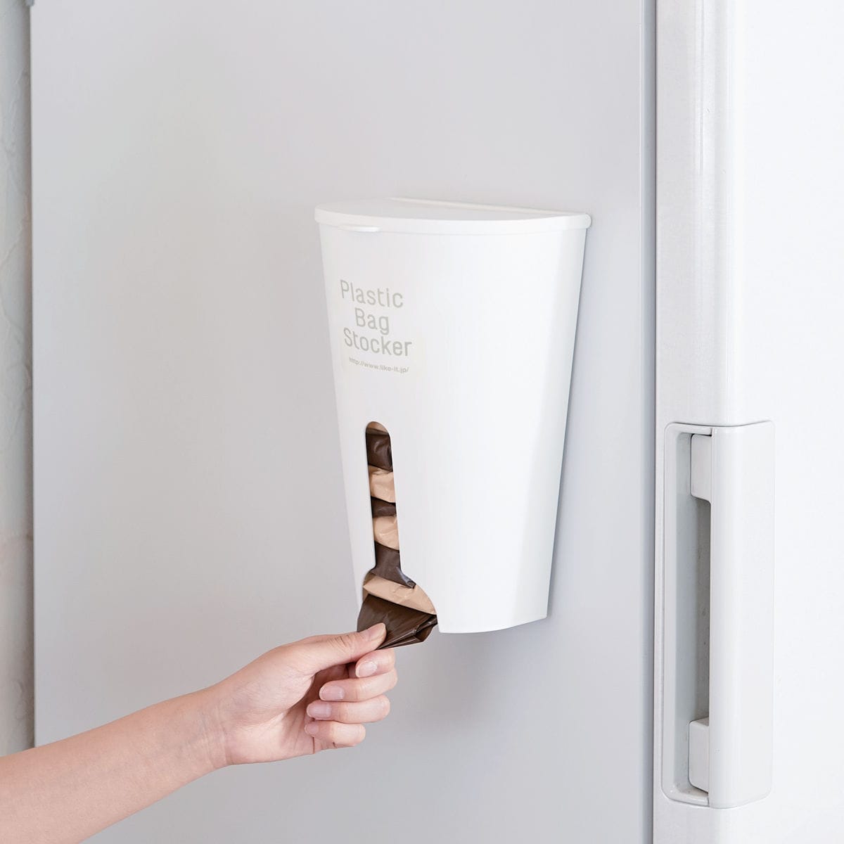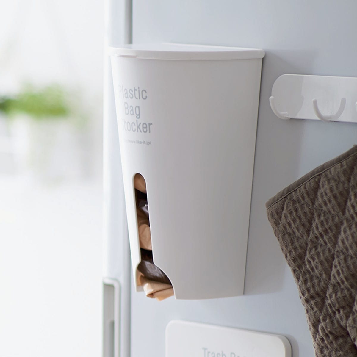 ●溜まったポリ袋を冷蔵庫サイドに簡単にストックできる、マグネット付きのポリ袋ストッカーです。