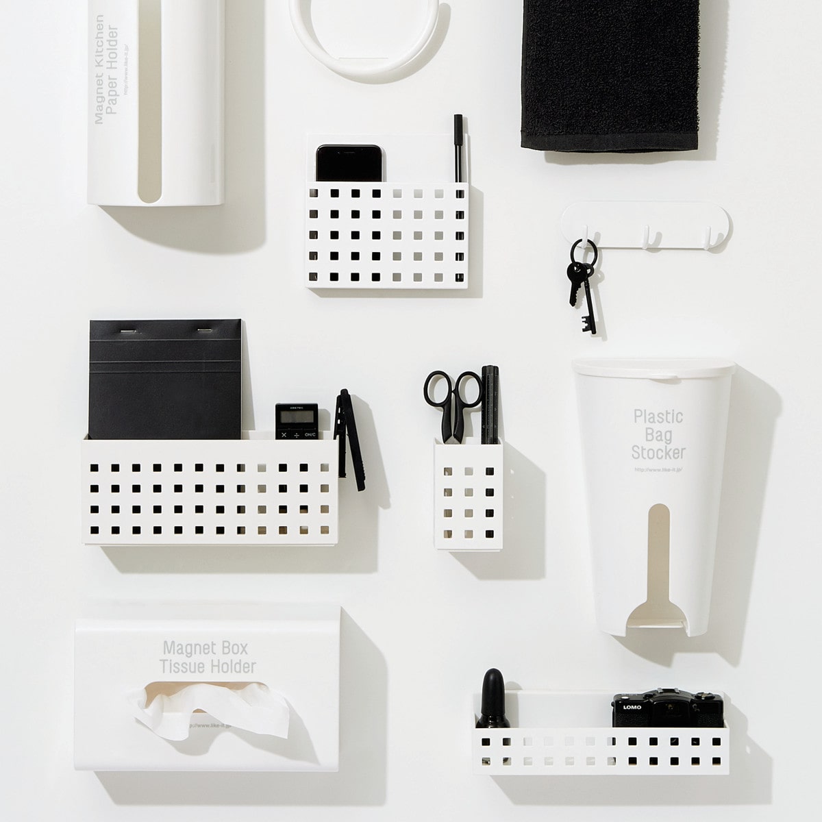 Mag-Onシリーズは、白色を基調としユニークな形をしたデザインです。シリーズの商品を組み合わせると色味が統一され、魅せる収納としておしゃれな雰囲気を演出してくれます。便利さとおしゃれさを合わせ持ったMag-Onシリーズを揃えて使いませんか。