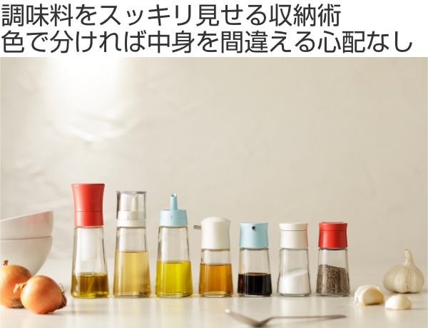 調味料入れはシンプルで使いやすいキッチン廻りの定番品です。食卓に合わせて選べるホワイト・レッド・スカイブルーの3色展開なので、食卓がより華やかに楽しくなります。
