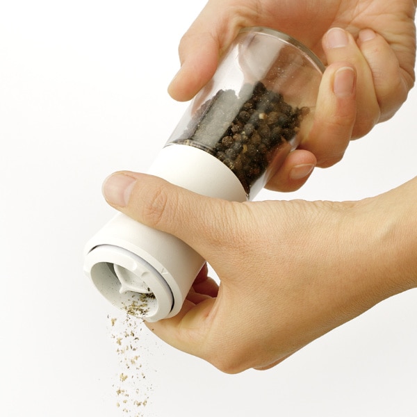 スタンダードな形状のペッパーミルです。ダイアルを回すと粗さの調節ができ、挽きたての香り、美味しさを手軽に味わうことができます。