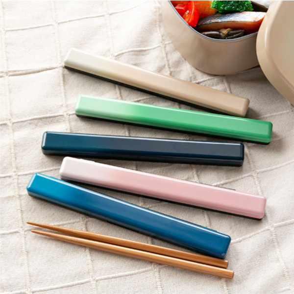 箸箱は横開きタイプでお箸が取り出しやすく、閉める時もカチッと音がするのでしっかりと閉まります。また、幅が2.3cmとスリムなのでランチバッグに入れてもかさばらず、持ち運ぶ際にも便利です。