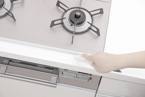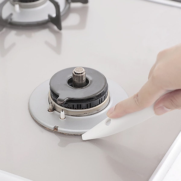 ブラシの後部に付いているスクレーパーがコンロ周りのこびりついた汚れなど、シールはがしなどにお使い頂けます。