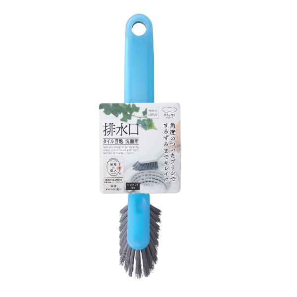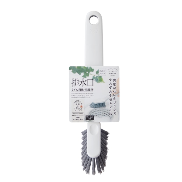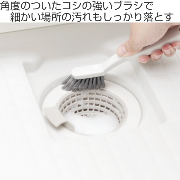 持ちやすく洗いやすい形状で、角度のついたブラシがすみずみまですっきり洗えます。排水口や蛇口まわり、浴室小物のお掃除に使えます。