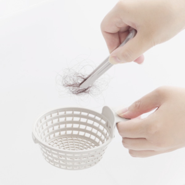 手で触れたくない排水口まわりの髪の毛やゴミがとれるピンセット付きです。先端が斜めでつかみやすくなっています。使わない時はブラシに収納できるので便利です。