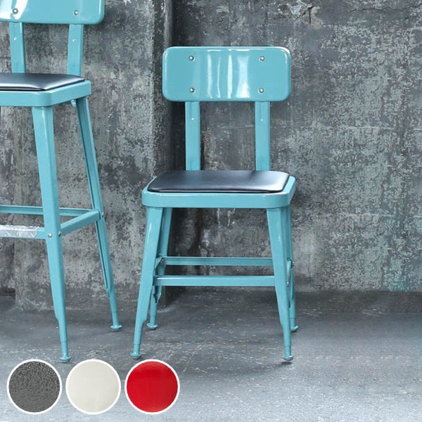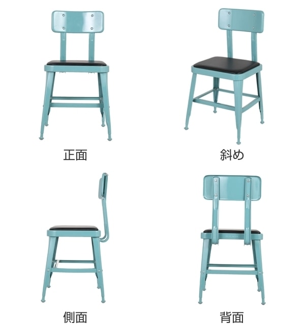 無骨で工業製品のようなかっこよさがある質感です。粉体塗装が施されているのでチェアが錆びにくくなっています。一点一点異なる加工が施されたチェアは、まるでショップ什器のような重厚さでお部屋をユーズド感溢れる雰囲気に仕上げます。