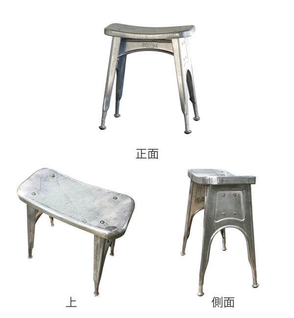 スツールには亜鉛メッキ加工が施されています。錆に強く、キズが付きにくくなっています。お部屋の雰囲気を大人っぽくおしゃれに惹き立ててくれる、ヴィンテージ感漂うデザインです。