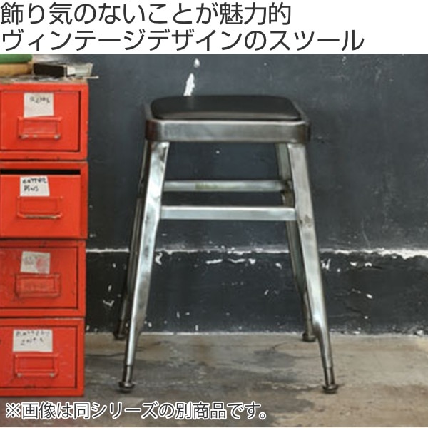 スツールには亜鉛メッキ加工が施されています。錆に強く、キズが付きにくくなっています。お部屋の雰囲気を大人っぽくおしゃれに惹き立ててくれる、ヴィンテージ感漂うデザインです。