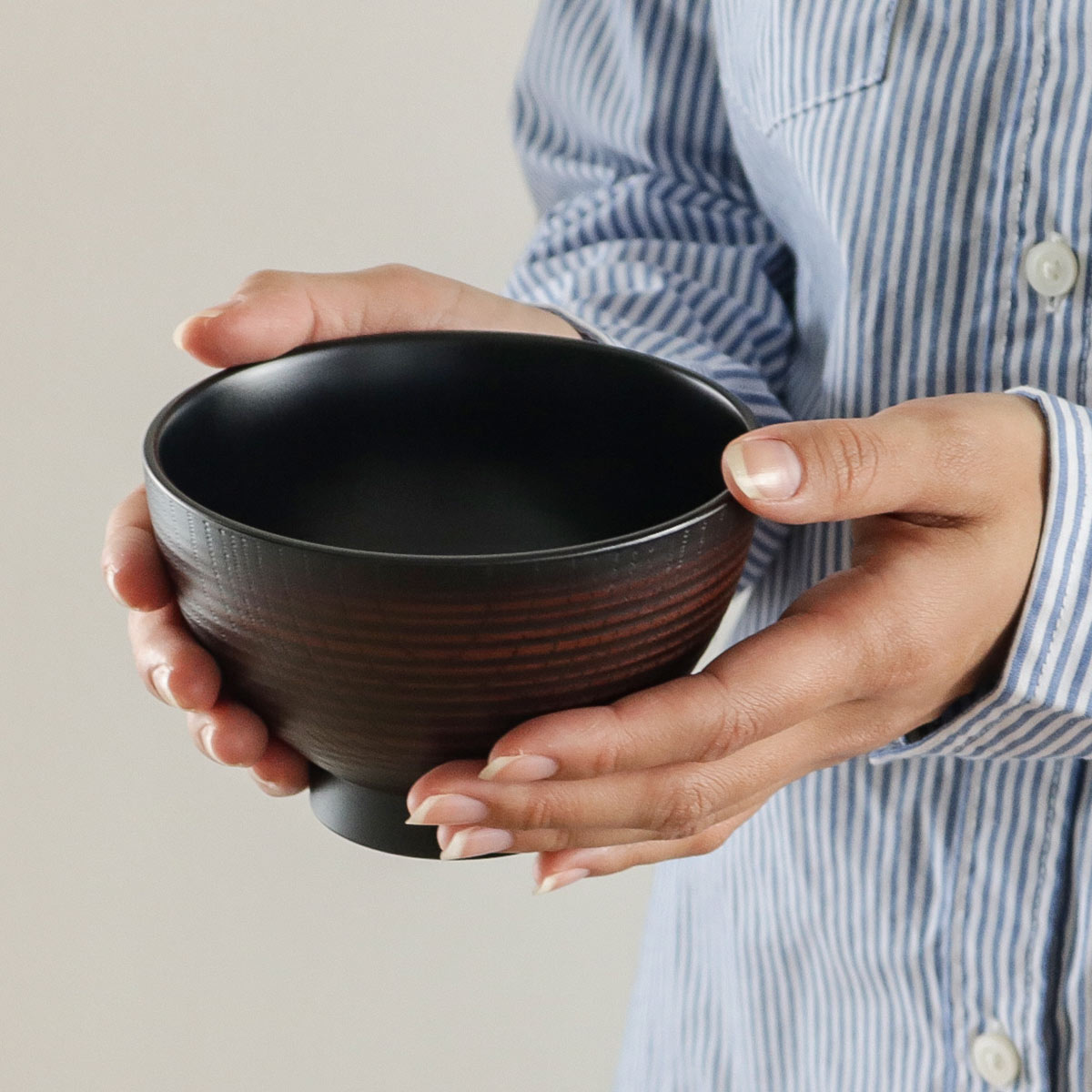 軽くて割れにくい、樹脂製の汁椀です。お子さまやお年寄りのいるご家庭でも安心してお使いいただけます。お味噌汁にはもちろん、サラダやミニうどんにもおすすめです。落ち着いた色合いで、上品なデザインなのでおもてなしにもぴったりです。