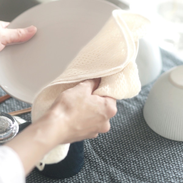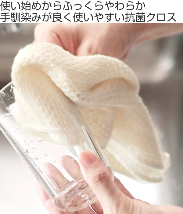 使い始めから、ふっくらとやわらかく手馴染みが良く、抗菌糸配合で清潔に使えるふきんです。食器用・テーブルクロスとして、キッチンに一つあると便利です。