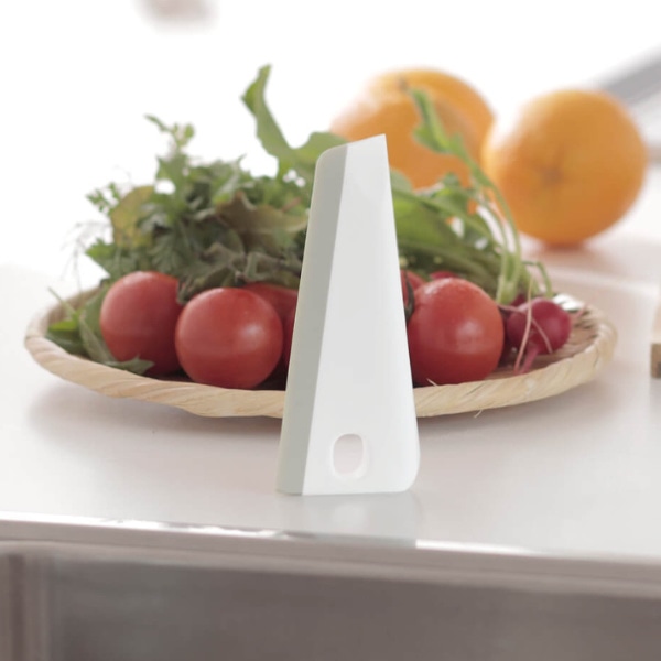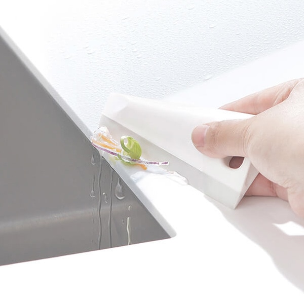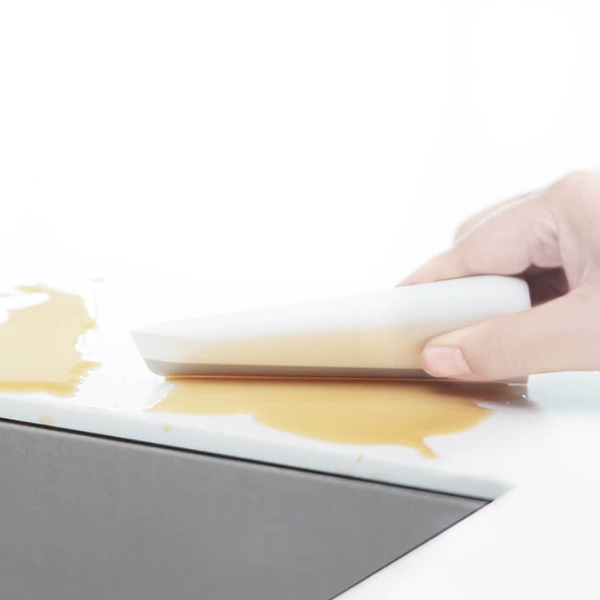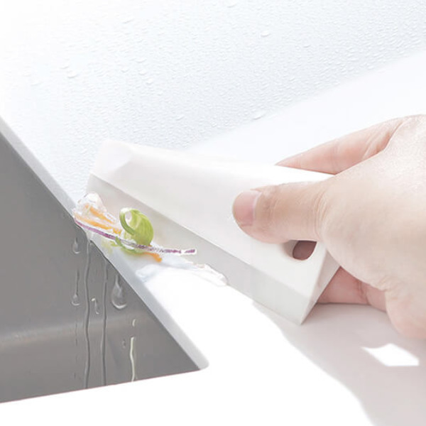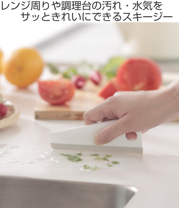 調理台に散った水気・汚れだけでなく、側面のスキージーで、調理中の食材の屑もサッと拭えます。