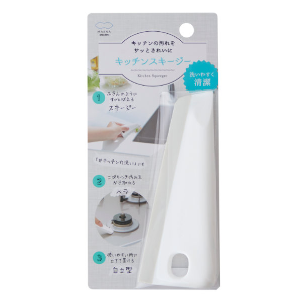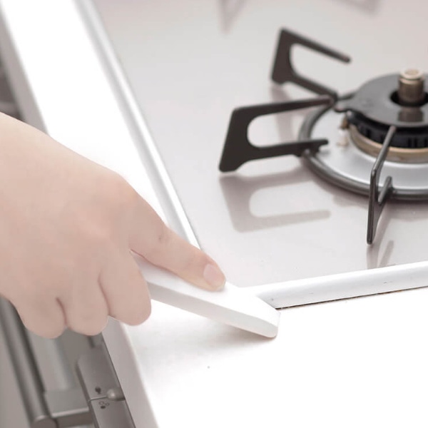 お掃除しにくいコンロ周りのお手入れにも先端のヘラ部分を使えば、レンジ周りや調理台のこびりついた汚れをかき取れます。丸洗いできないところも、このスキージーを使えばお掃除できます。