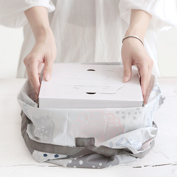 レジ袋と同じような感覚で荷物をスムーズに収納できます。底マチフリー構造のため、傾けたくないお惣菜やお肉、底面が広いケーキの箱なども入れられます。