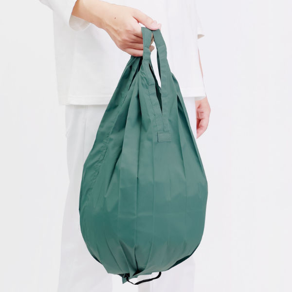 両側を引っ張るだけで一気にたためるコンパクトバッグ
