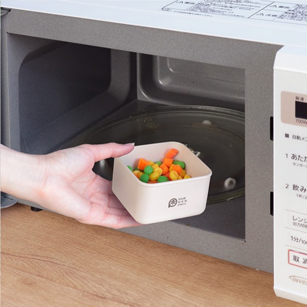 3種類のサイズ違いのスクエア容器は重ねることができるので、使い終わった後や、収納する際にかさばりません。サイズ違いで揃えて、おかずとご飯を分けたり、温めるものと冷たいままで食べたい食材を分けるなど、ランチボックスとして使うのもおすすめです。