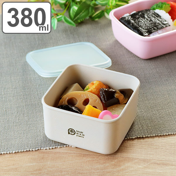 抗菌効果が期待されるひのきが含まれた素材「ひのきのぷら」を使用したスクエアタイプのお弁当箱です。環境にもやさしく、機能面も優れたエコ素材です。容量は380mlで、様々な使い方ができる便利なサイズです。