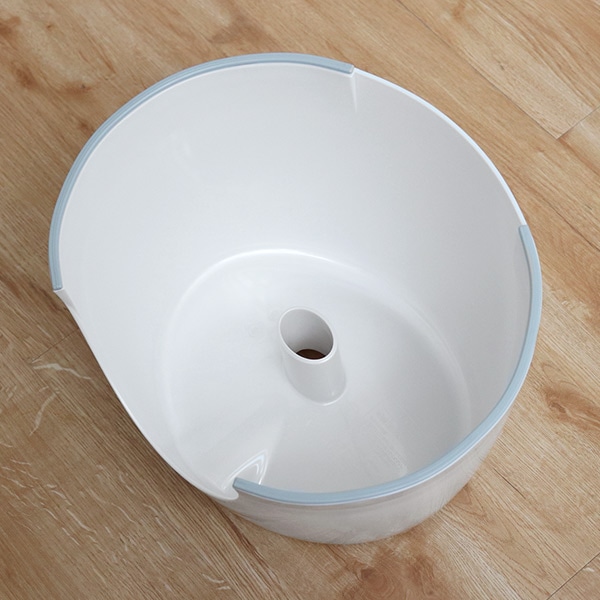 下半身が洗いやすい凹みがついています。また座面が緩やかに丸くカーブしているので、ホールド感のある優しい座り心地です。