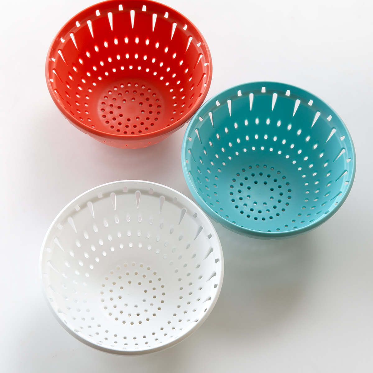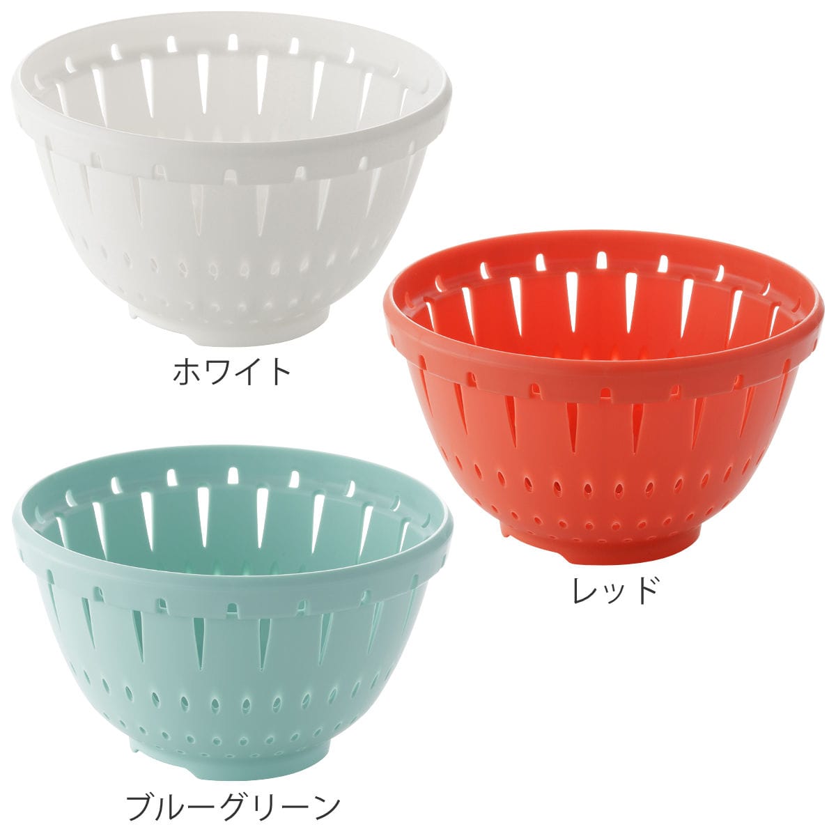 野菜を洗ったり、パスタの湯切りなどに使えるコランダーです。小さめサイズなので、少しの食材や食べる分だけをサッと洗えるので便利に使えます。抗菌・防汚加工で、食洗機OKなのでお手入れも簡単です。