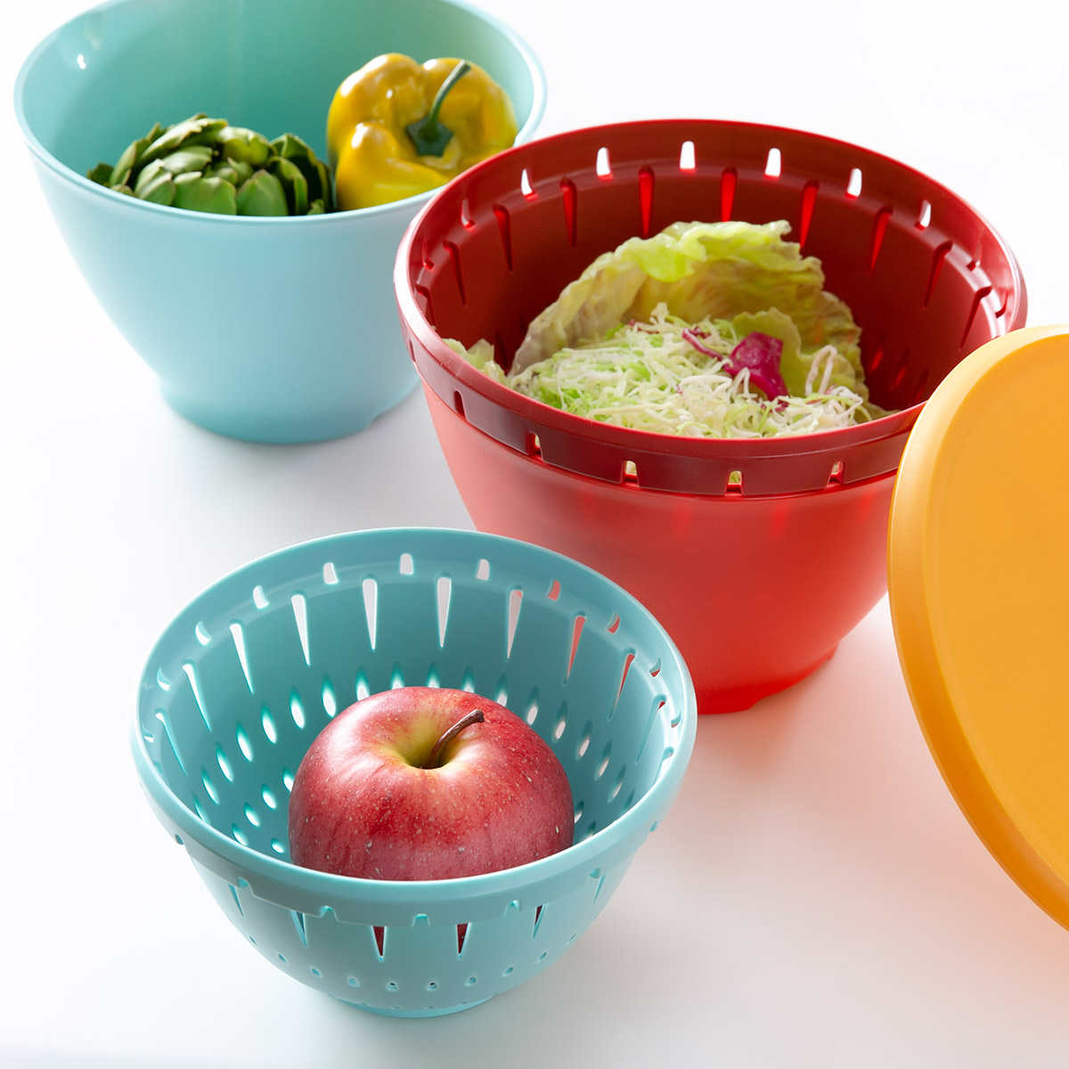 同シリーズは、ボール&コランダーセット、ボール、コランダーの単品と、種類もカラーも豊富なので、自分好みのカラーやサイズを組み合わせてカスタマイズしていただけます。調理の用途などによって上手に複数のボールやザルを使い分ければ、多くの食材を同時進行で調理でき、食材の大きさに合ったものを使うことができます。