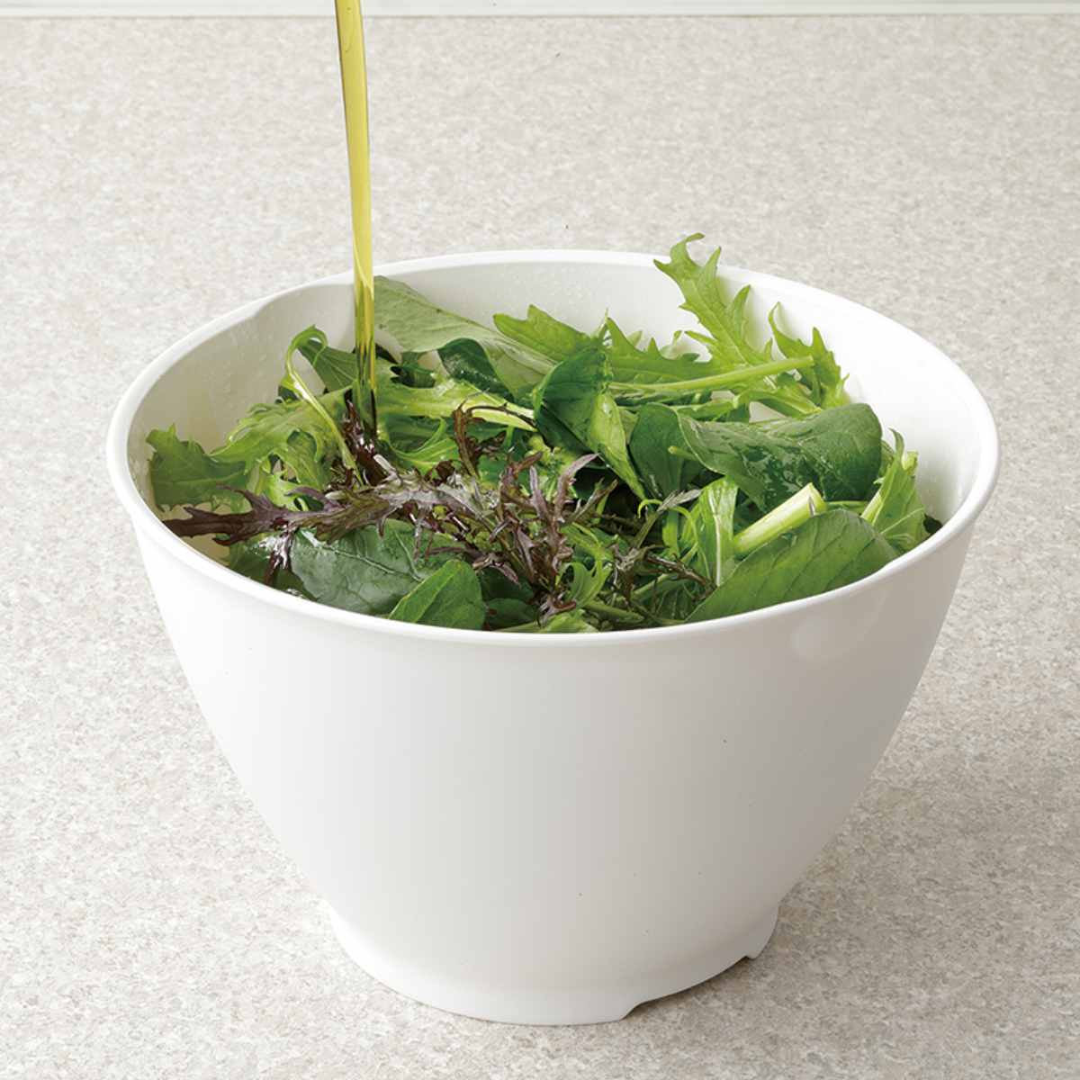 深型設計なので食材が混ぜやすく、中身が飛び散りにくいので、狭いキッチンでも安定して使うことができます。注ぎ口付きなので液だれしにくく、液状のドレッシングやソース類もきれいに注ぐことができます。