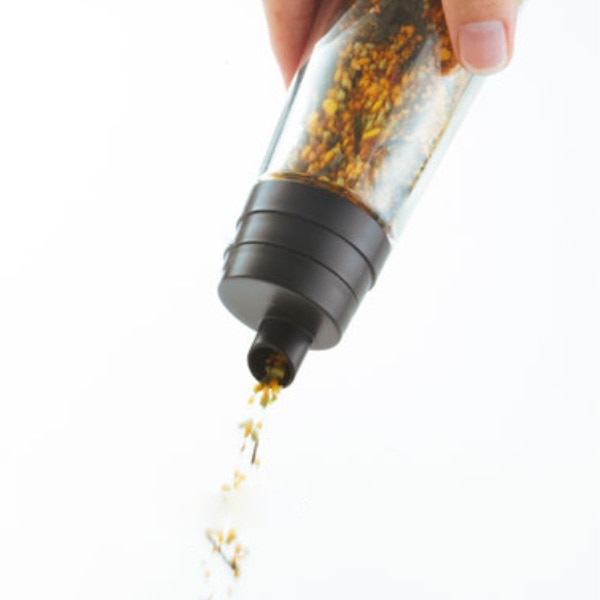 ふりかけからうまみ調味料まで、大きさの異なる色々な粉末調味料が思い通りの分量で出せる便利な3段階の注ぎ口付きです。不意の転倒に備えて穴を閉じることもできるので安心です。