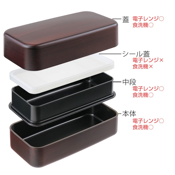 木のぬくもり溢れる木目調の長角2段弁当箱