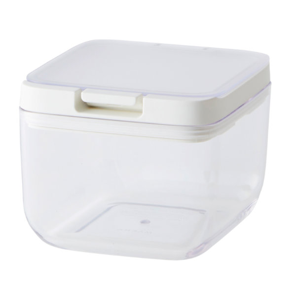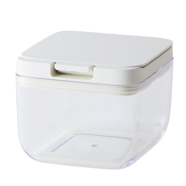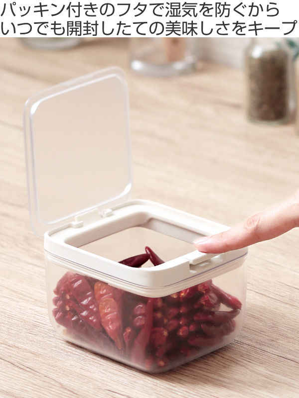 パッキン付きで、湿気を防いでいつでも開封したての美味しさを保ってくれます。また、ワンタッチオープンだから、開け閉めしやすくフタの置き場に困りません。調理中など片手がふさがっていてもラクに開閉できます。
